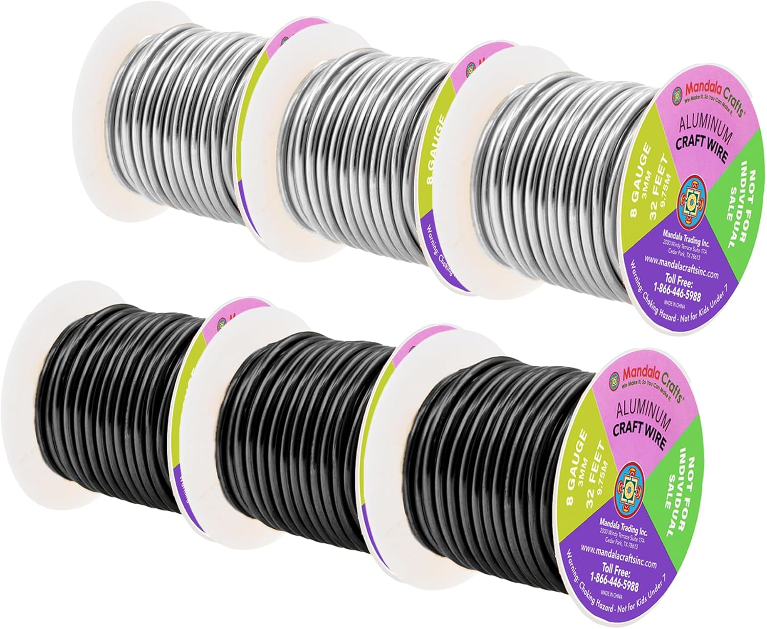 • 6 Bulk 8 Gauge Aluminum Wire Rolls for Crafts: Each 20 feet long, round 3.26mm wire or 8-gauge crafting wire is continuous. The silver and black thick wire with 8g wire gauge fits for indoor & outdoor use.