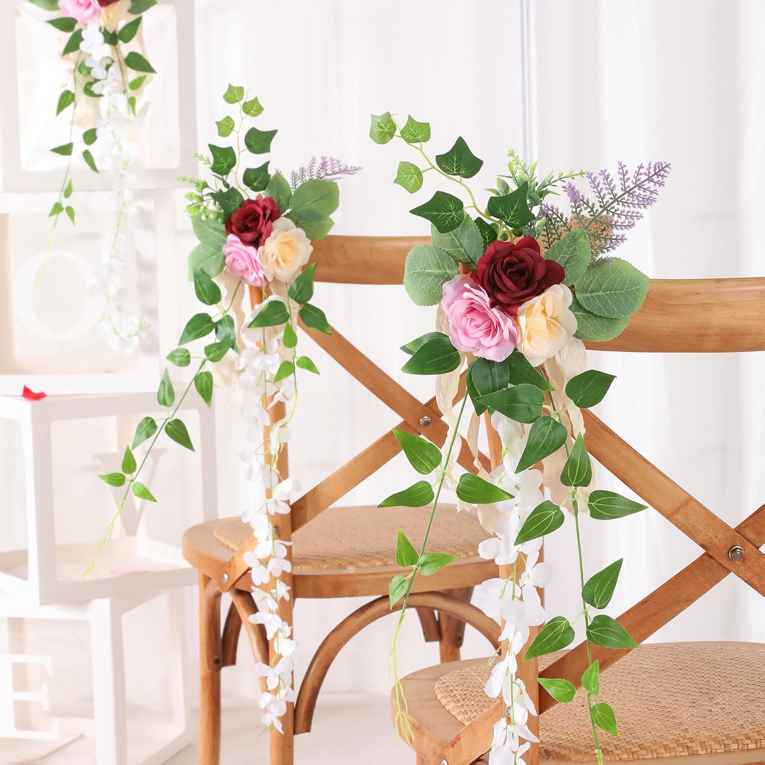 Wedding Aisle Decorations Set of 10 Chair Back Flowers Floral Pew Wedding Decorations for Ceremony with Chiffon Ribbons Fall Decor