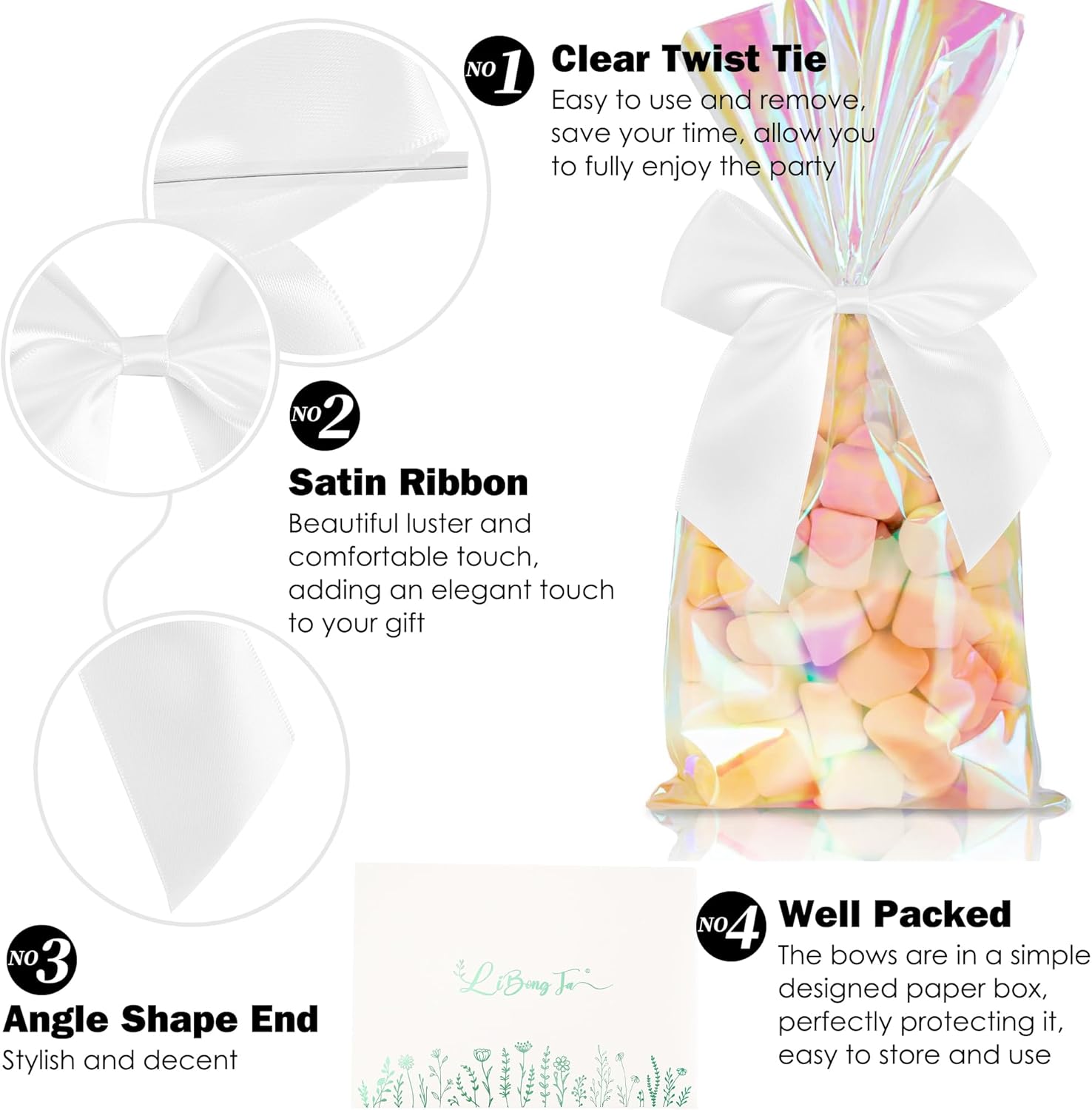 4.5" Satin Ribbon White Bows for Gift Wrapping, Twist Tie Bows, Cute Bows for Crafts, Party Favors, Premade Bows Pre-Tied Decorative Bows for Flower Bouquets Candy Apple Bows-24 Counts