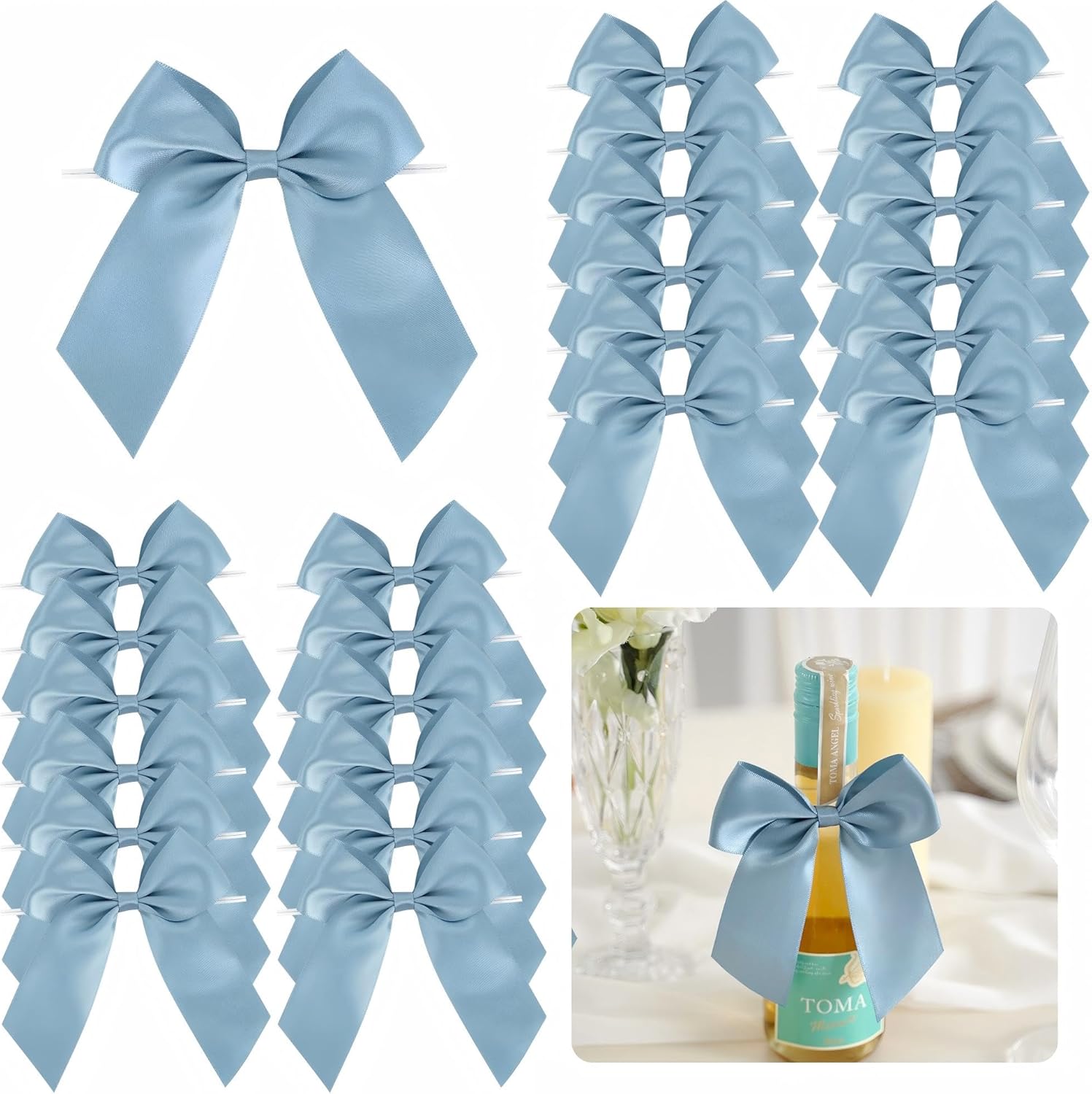 4.5" Satin Ribbon Dusty Blue Bows for Gift Wrapping, Twist Tie Bows, Cute Bows for Crafts, Party Favors, Premade Bows Pre-Tied Decorative Bows for Flower Bouquets Candy Apple Bows-24 Counts