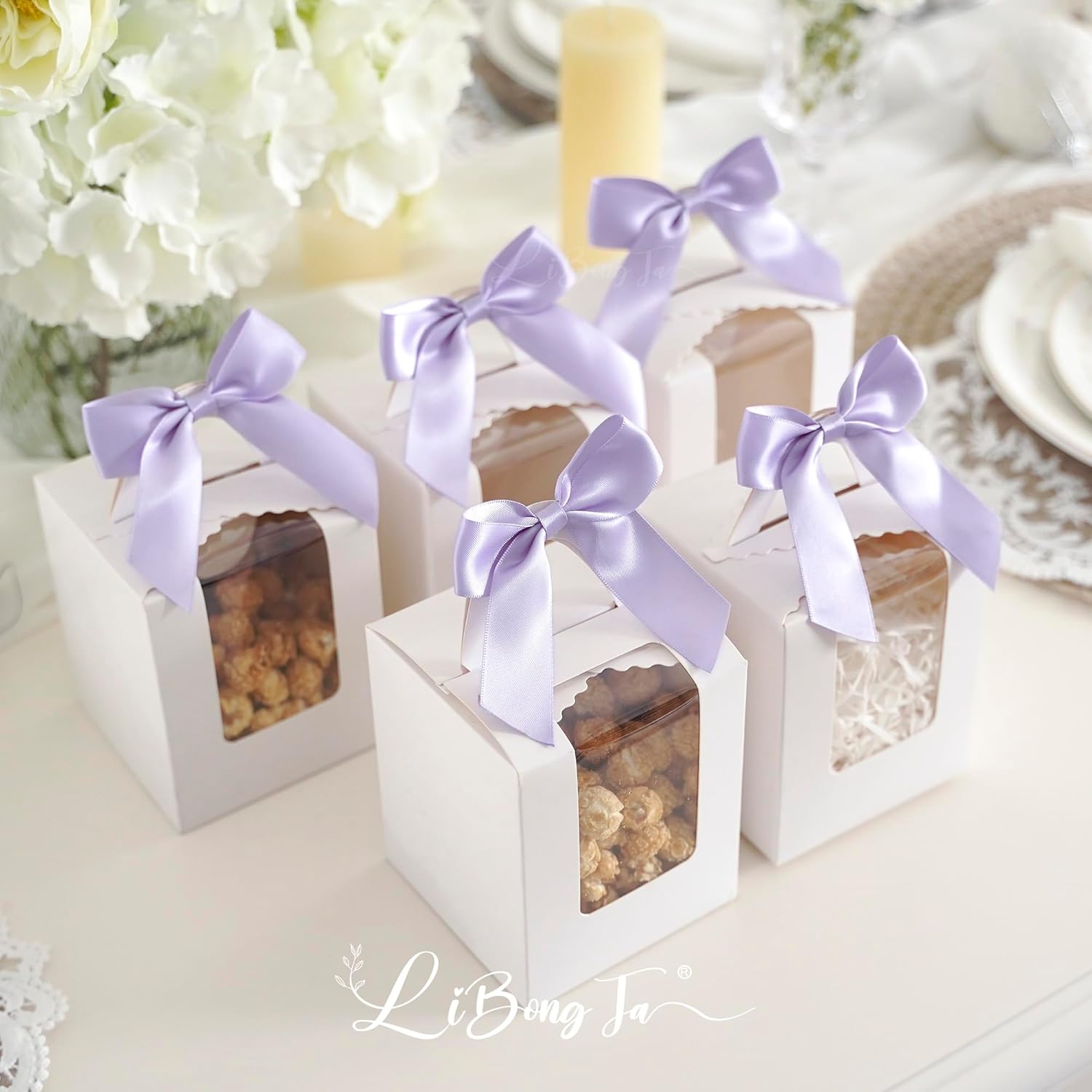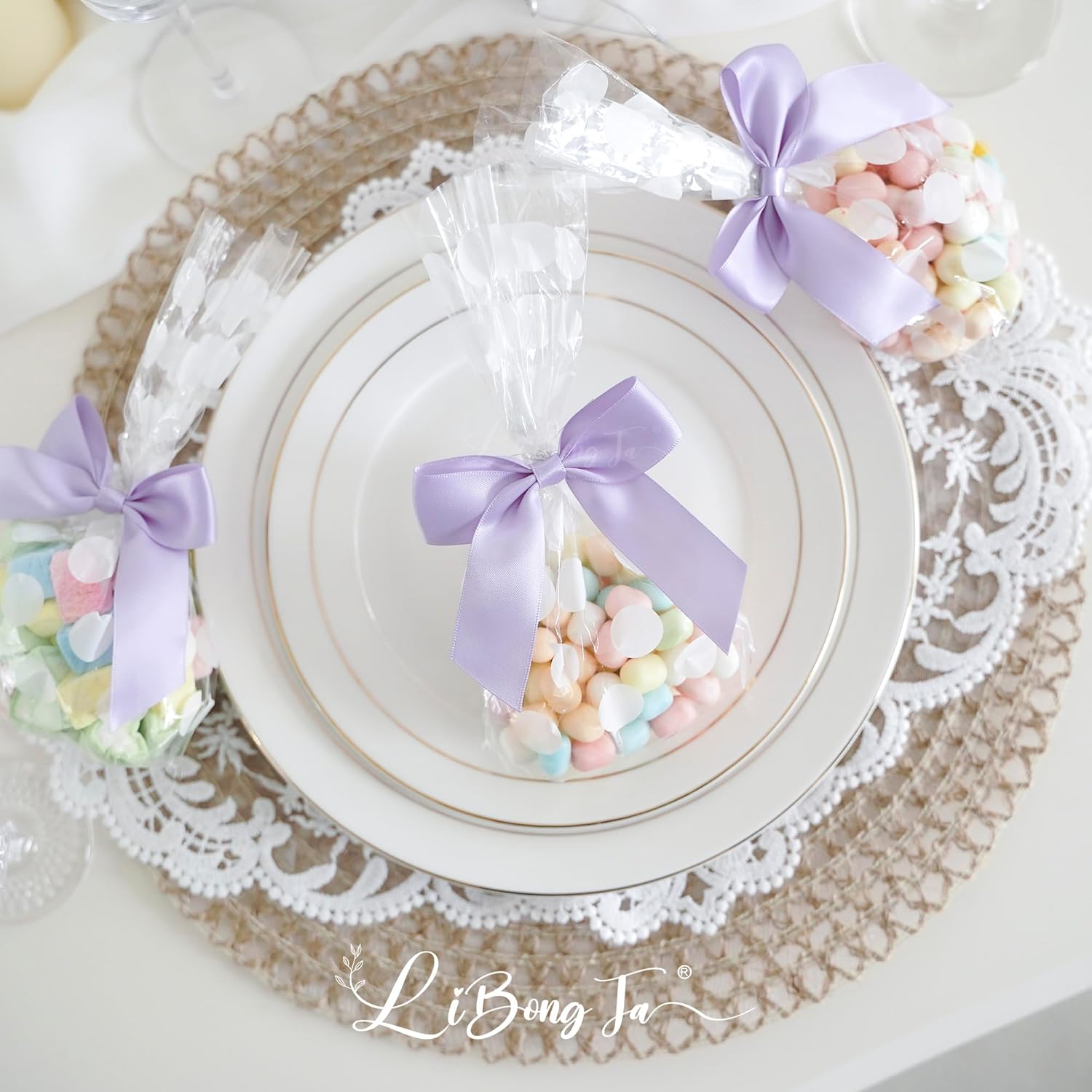 3.5" Lavender Bow Satin Pre-Tied Bows for Gift Wrapping, Small Bows for Crafts, Purple Bows, Candy Apple Bows, Twist Tie Bows for Cake Decorating, Party Favor, Wedding Decoration-36 Counts
