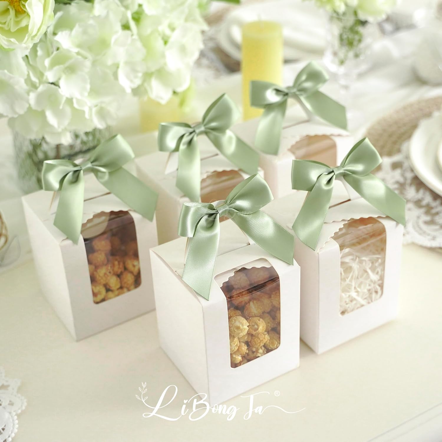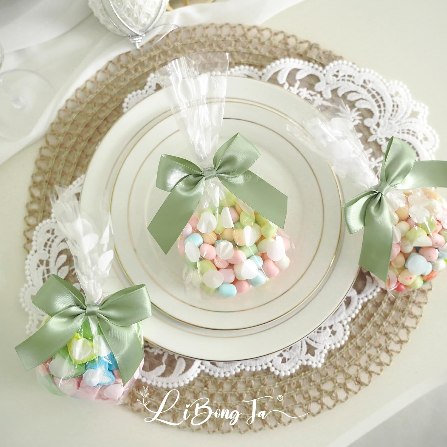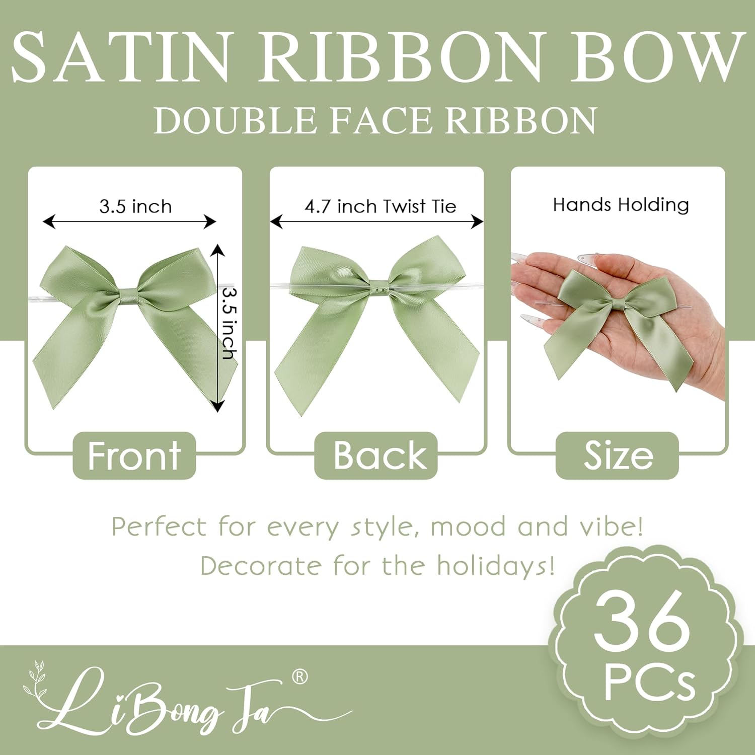 3.5" Sage Green Bow Satin Pre-Tied Bows for Gift Wrapping, Small Bows for Crafts, Premade Bows, Candy Apple Bows, Twist Tie Bows for Cake Decorating, Party Favor, Wedding Decoration-36 Counts