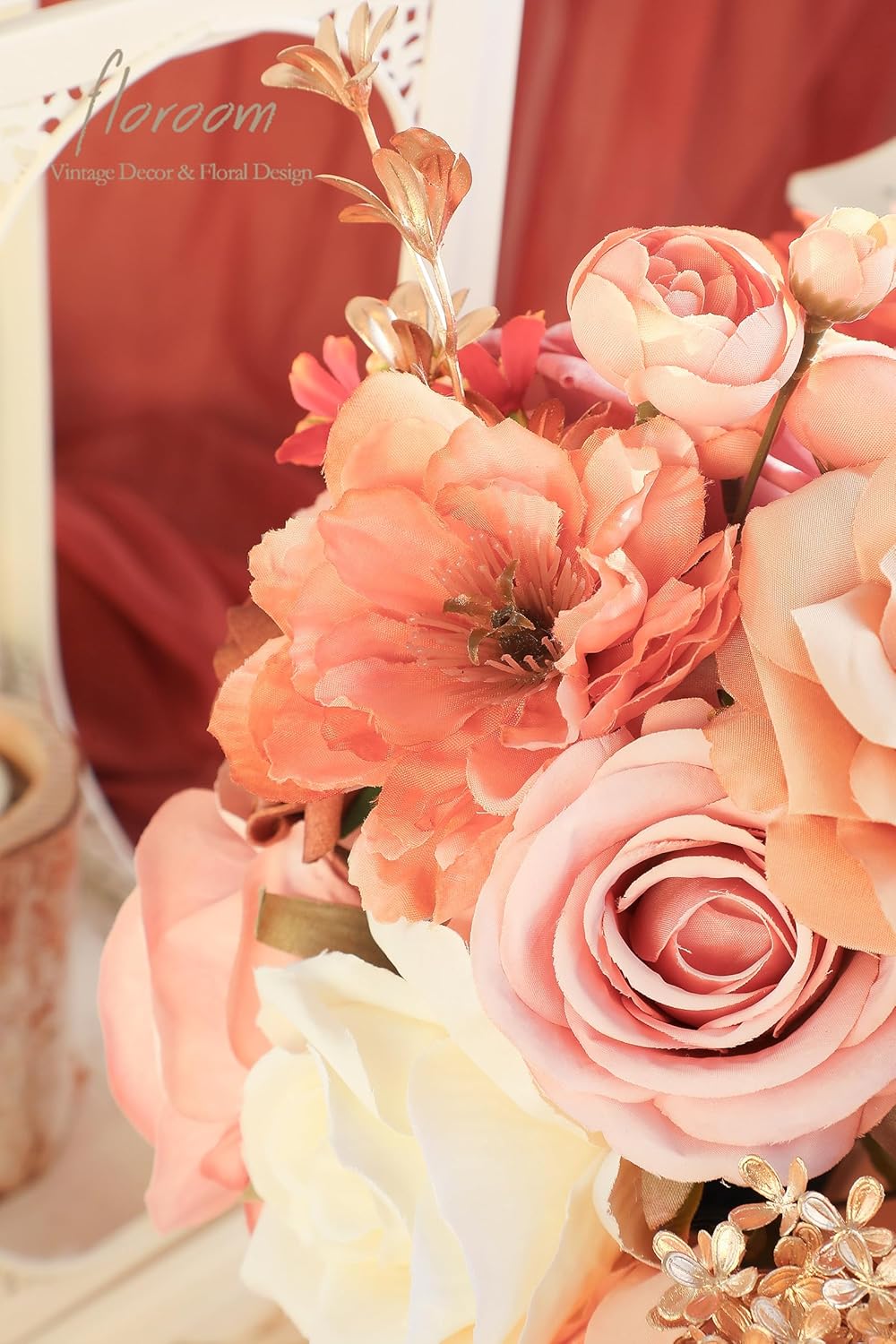 • ❤️ Package Details: Includes faux silk flowers with terracotta dahlias, dusty rose and apricot roses; foam flowers feature dusty rose, cream, and ivory roses. Also contains ranunculus and golden olive branches as accessories.