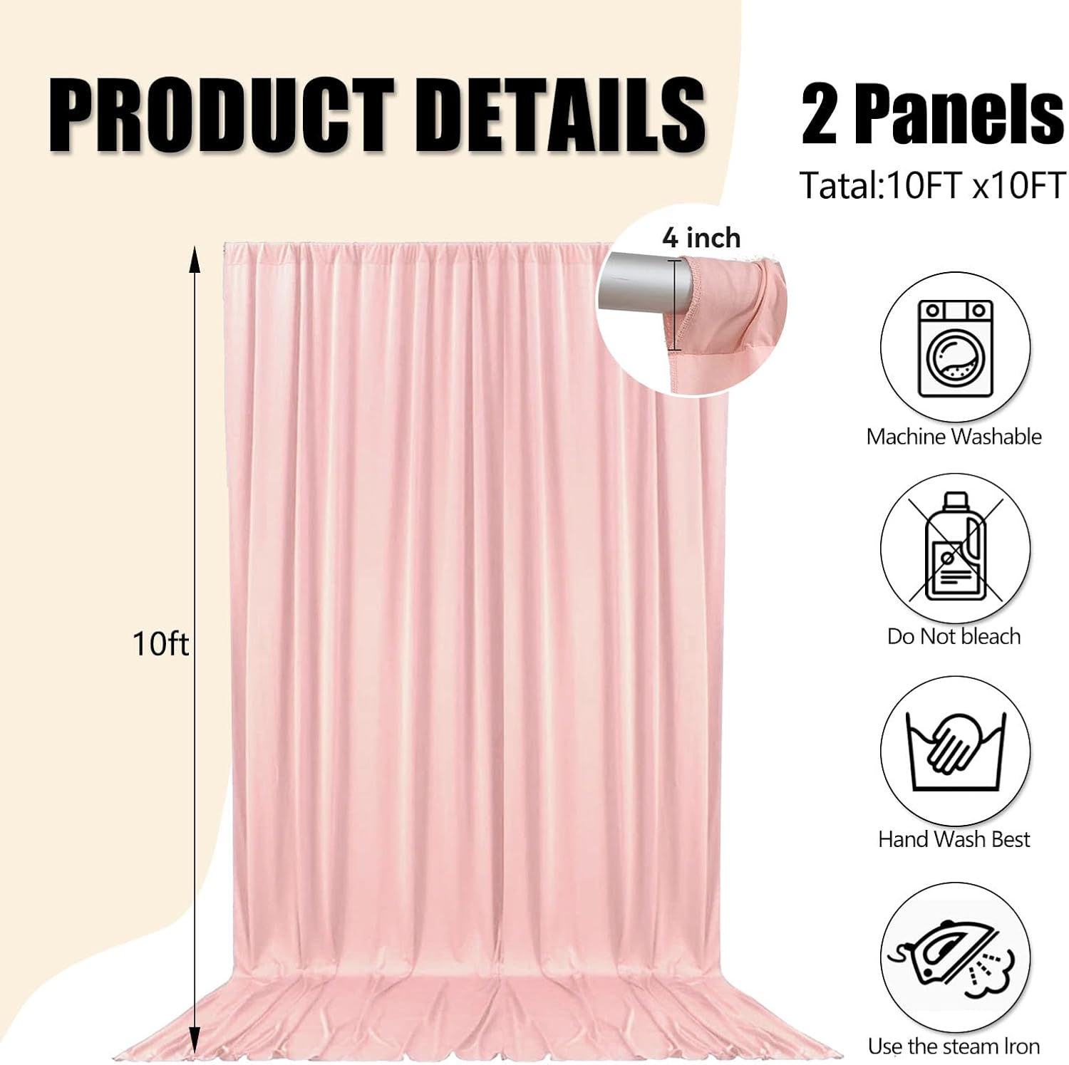 10ft x 10ft Ligt Pink Backdrop Curtains for Parties, Fabric Satin Background Curtain with Rod Pockets for Weddings, Birthday, Baby Shower, Photography, Graduation Party Backdrop Drapes, 2 Panels