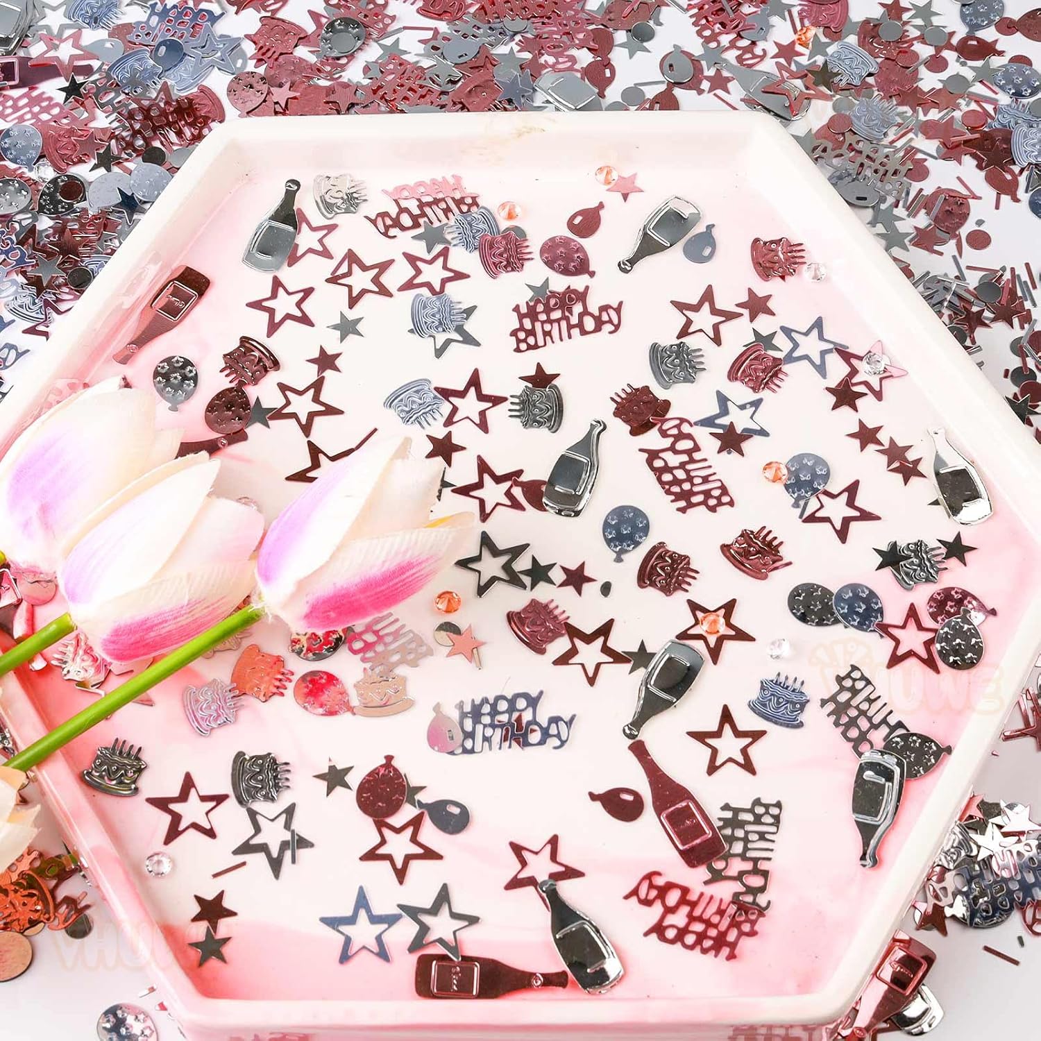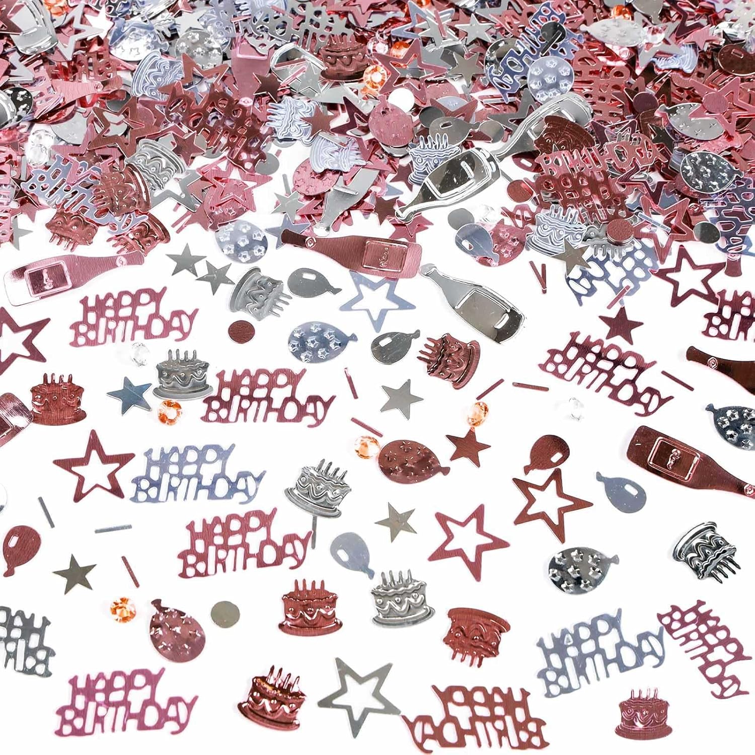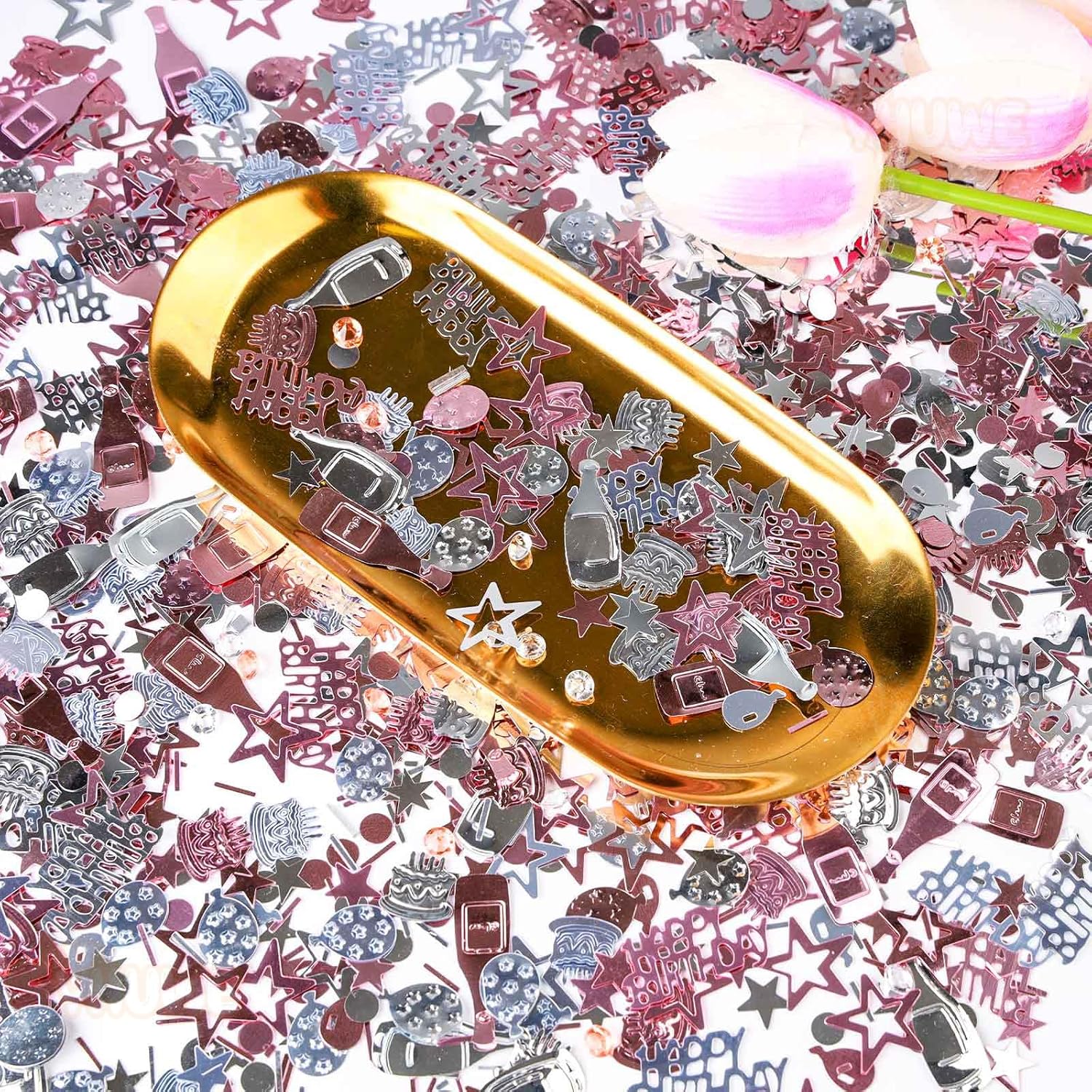 VHUWE Happy Birthday Confetti, 1.6 oz Rose Gold Silver Cake Balloon Star Goblet Bottle Glitter Confetti for Happy Birthday Party Decorations Boys Girls Kids Women Men Birthday Table Decorations