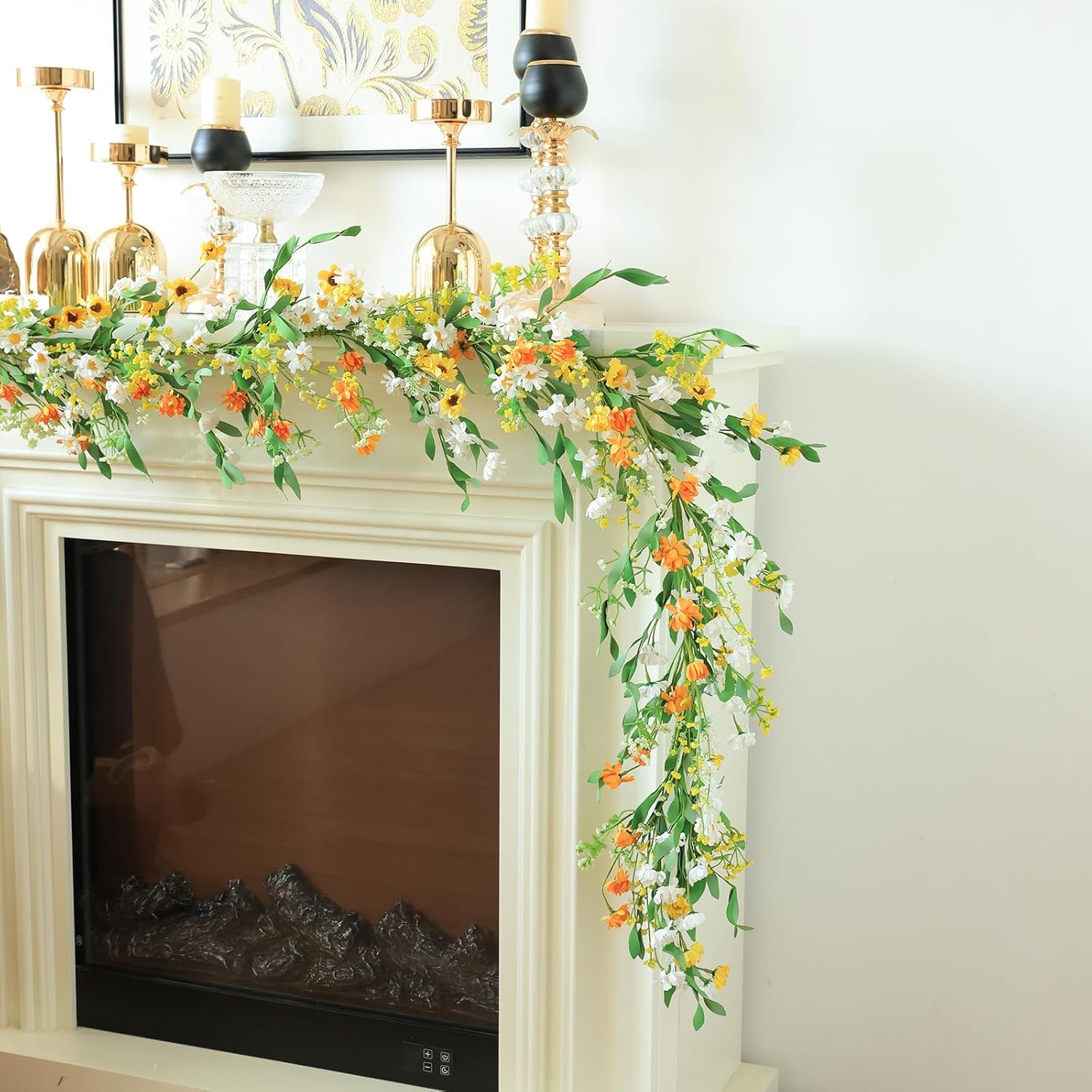 Mizii Artificial Flower Garland 6FT Fake Daisy Floral Garland Daisies Hanging Vines Spring Summer Flowers Decorations for Mantle Table Centerpieces Room Wall Fireplace Party Wedding Decor (Daisy)