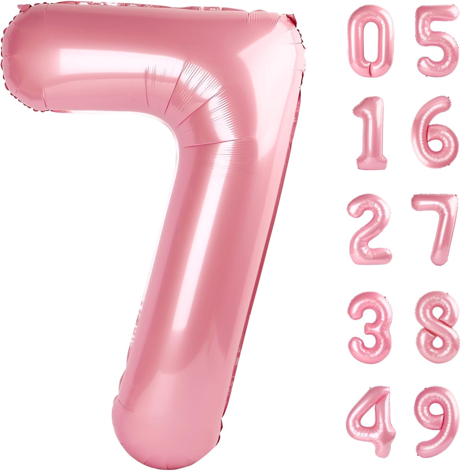 • 1.Elegant Understated Pearlescent Pink Number Balloons: You will receive an uninflated 40 inch 7 balloon number. Big number balloons are always the best statement of romance and surprise. Pearl pink balloon symbolize vitality exoticism, adding glamour to birthday parties. Bright pink and huge size make 7 birthday balloon a highlight of special parties. Choose one or more numbers from 0-9 number balloon, and use 7 17 27 37 47 57 67 77 87 97 balloon numbers to create a lively and charming party!