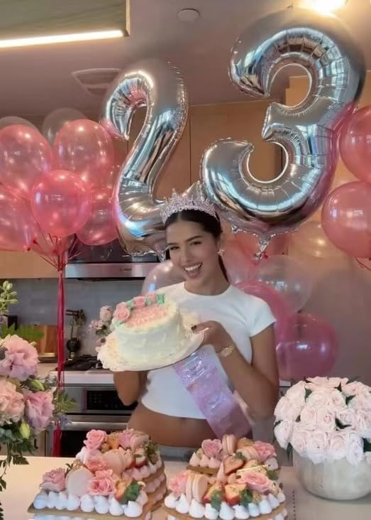 40 Inch Silver 23 Large Number Balloon, 23 32 Silver Birthday Party Decorations, Number 23 Foil Balloons for Anniversary Party Graduations Celebration Supplies