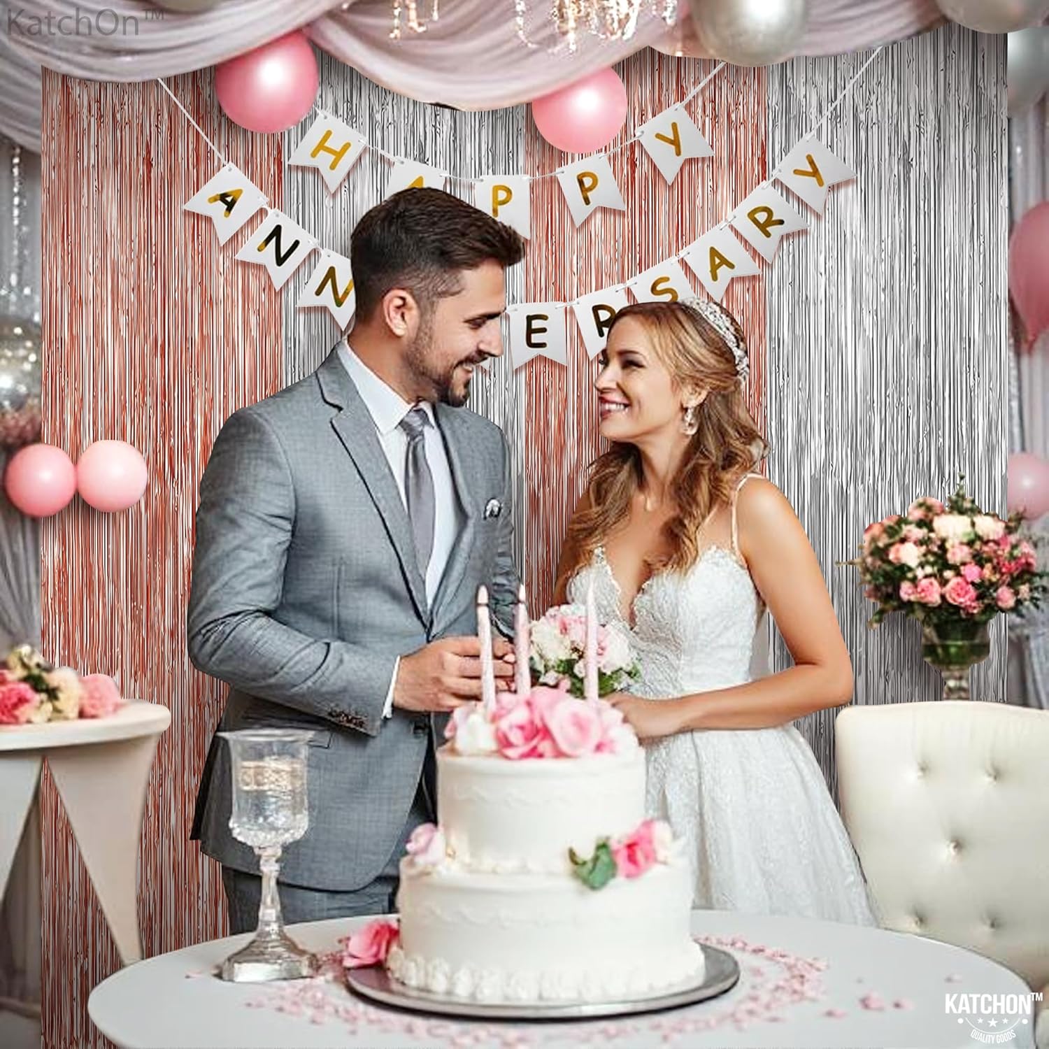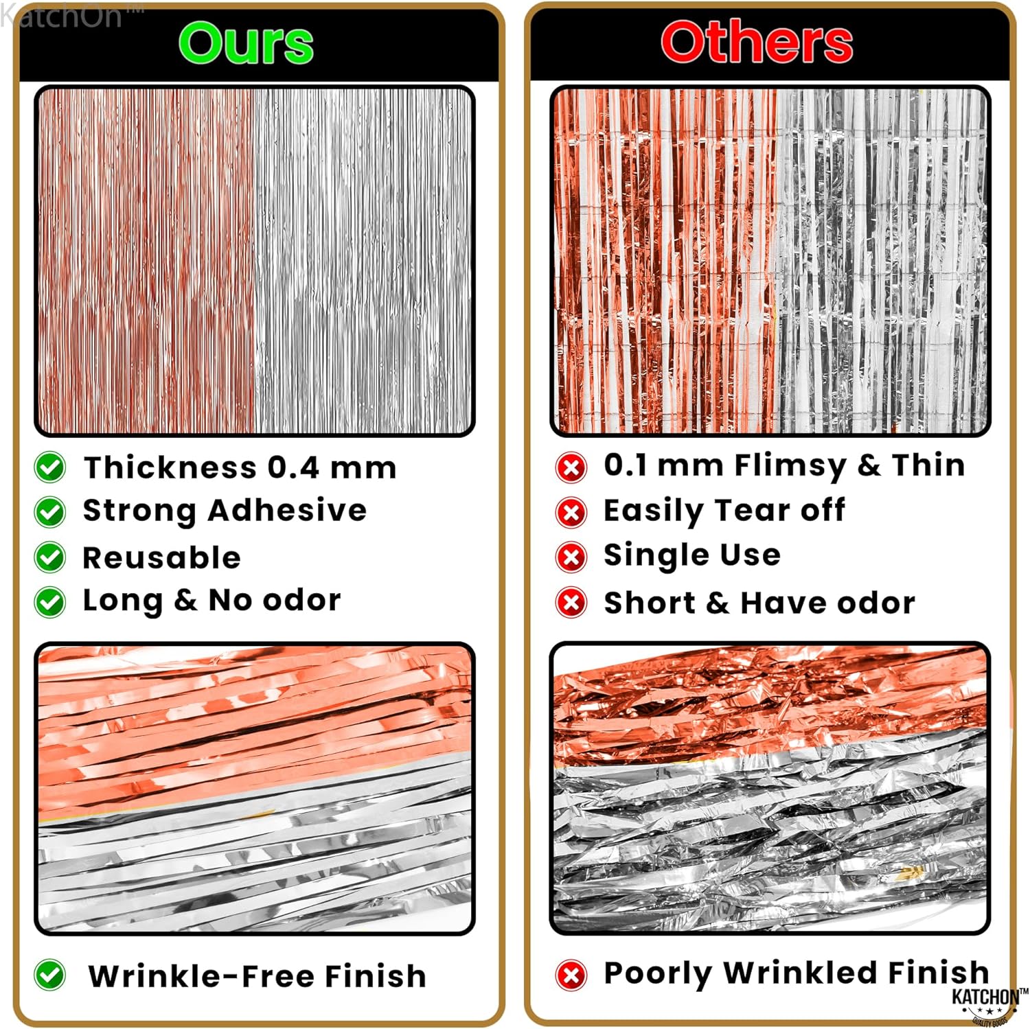 KatchOn, Large Silver and Rose Gold Fringe Backdrop, Pack of 2 | Silver & Rose Gold Streamers for Rosegold Birthday, Unicorn Party Decorations | Backdrop for Bachelorette, Bride Party Decoration