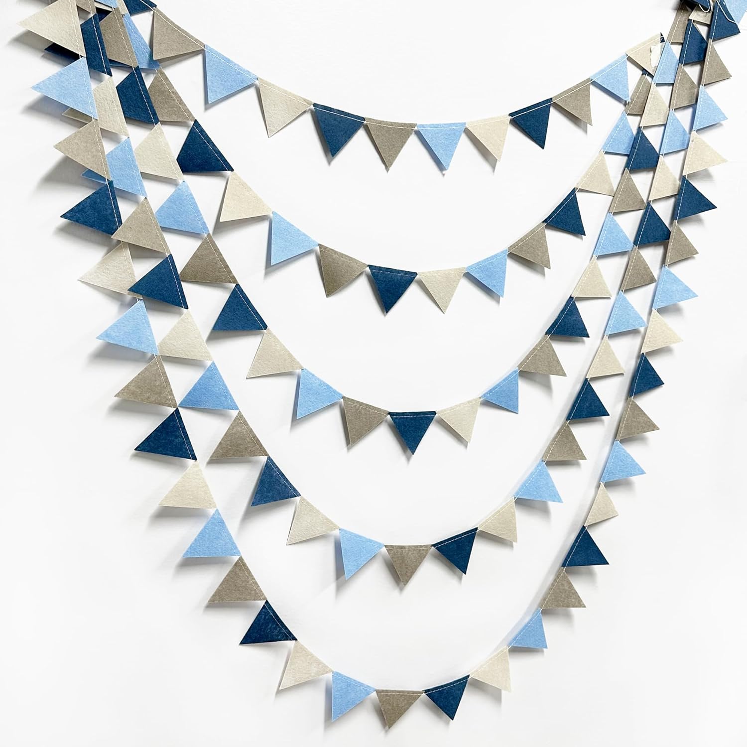 • Easy Assembly - Easy hanging and reusable.Perfect fit for grey blue party decor.unroll and unwrap garland carefully. due to delicate nature of thread, may tangle.This dusty blue mini triangle pennant makes an attractive backdrop for videos and photos.