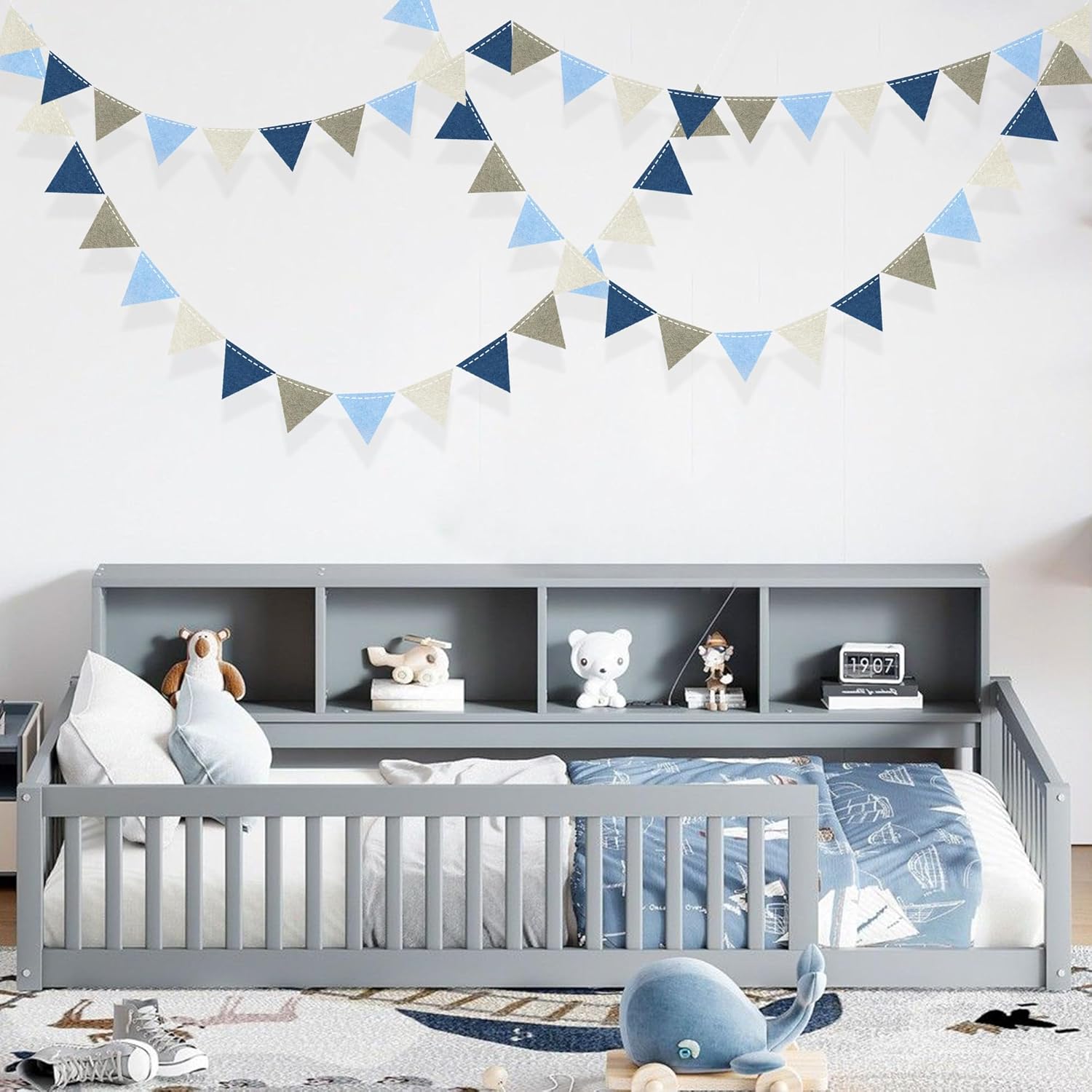 Dusty Blue Party Decoration Gray Blue Felt Hanging Triangle Mini Bunting Pennant Banner Flag for Baby Shower Birthday Wedding Nautical Ahoy Achor Bridal Shower Engagement Party Classroom Nursery Decor