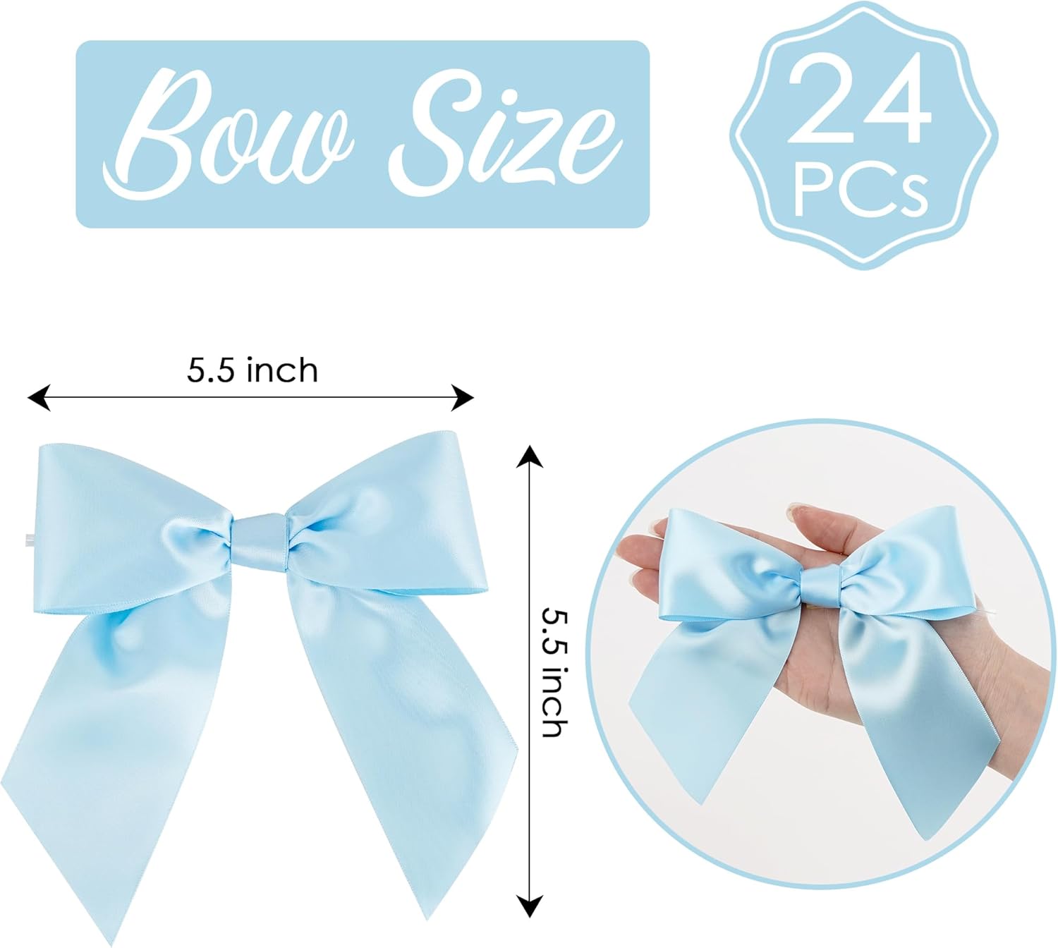 AIMUDI Baby Blue Satin Bows 5.5" Bows for Gift Wrapping Satin Twist Tie Bows Premade Ribbon Bows for Treat Bags Invitations Baskets Crafts Wedding Birthday Baby Shower Easter Decorations, 24 PCs