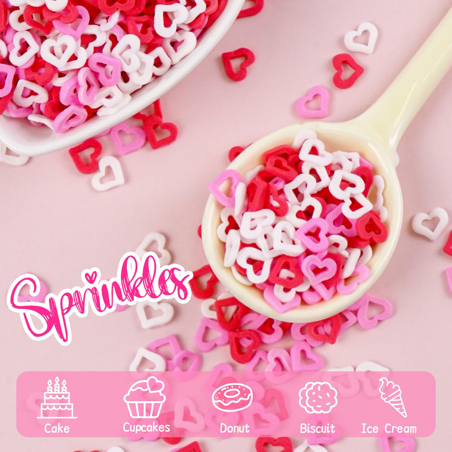 • Edible Hearts Sprinkles are a mix of white, red and pink. They can make your baking perfect and fun, and even beginners can easily use them. They can be used on cakes, cupcakes, waffles, cookies, and ice cream.