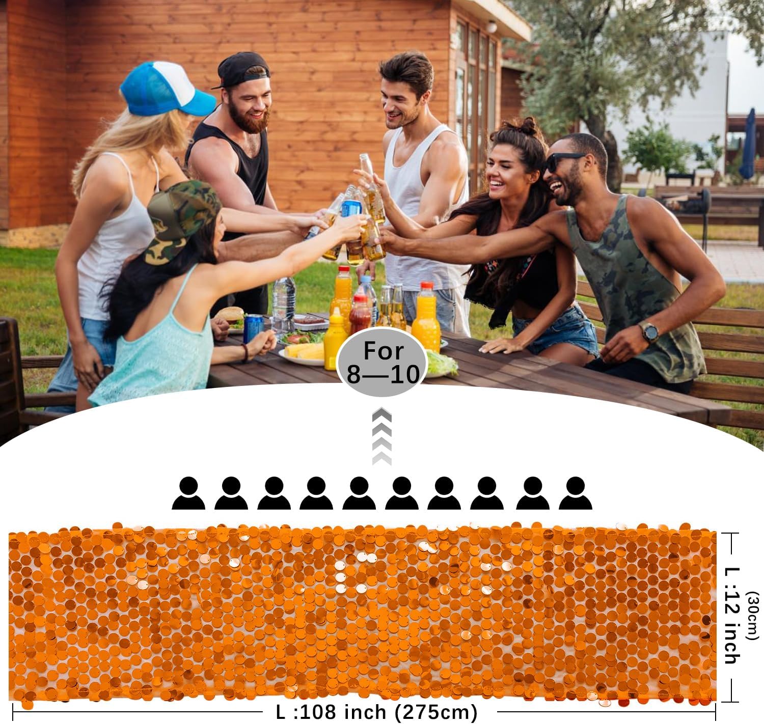 VHH Sequin Table Runner 12 x 108 inches Orange Table Runner, Glitter Runner for Party Wedding Birthday, Party Spring Easter Rustic, Birthday Supplies Decorations (1 Pack).
