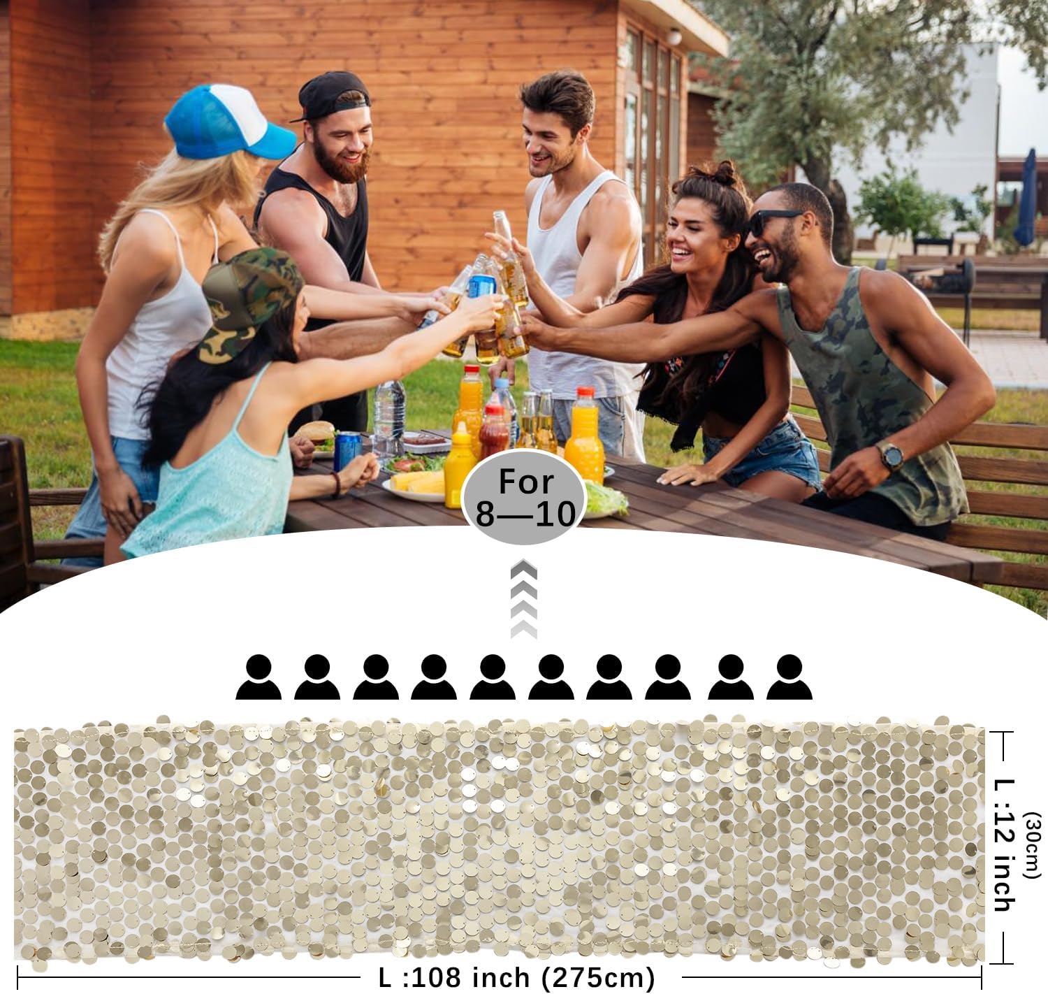 • Size: The 12" x 108" sequin table runner is suitable for tables that can accommodate 8-10 people. Great ideal for wedding table decorations for the reception.