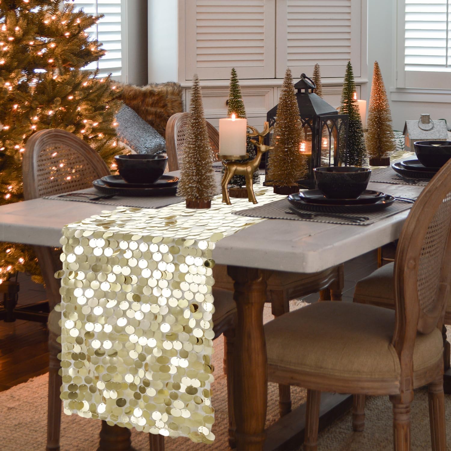 • What You Get: The package includes 1 champagne sequin table runner.