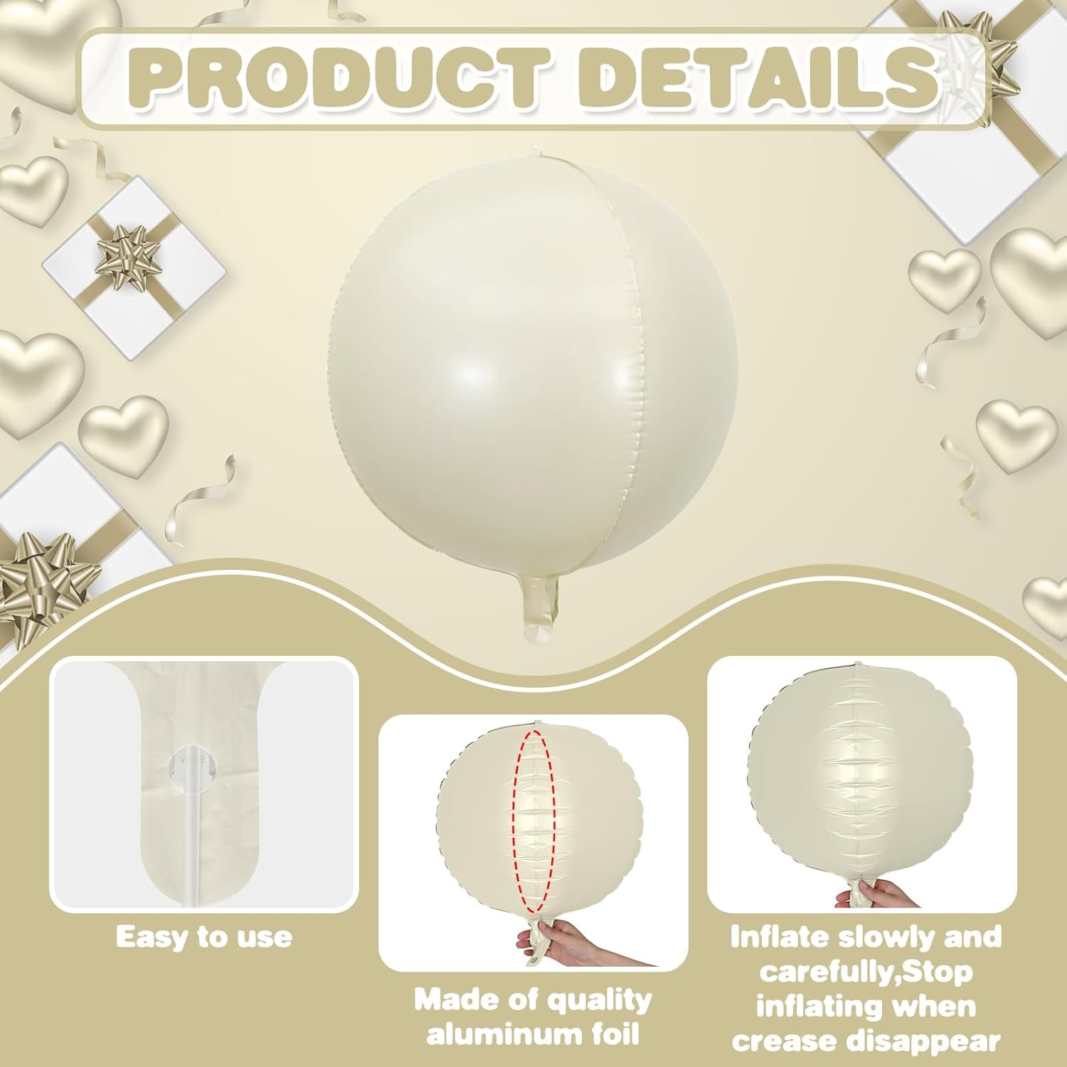 • 【WIDELY APPLICATION】these cream white brown foil round 4D balloons can be used for various occasions,such as birthday decorations,anniversary,valentine's day,baby shower,engagement wedding decorations,bridal shower,graduation celebrations,particularly for the class of 2025,bachelorette marriage proposals.they can also be used as a photo background,etc.they will make a deep impression on the cream white theme party guests.