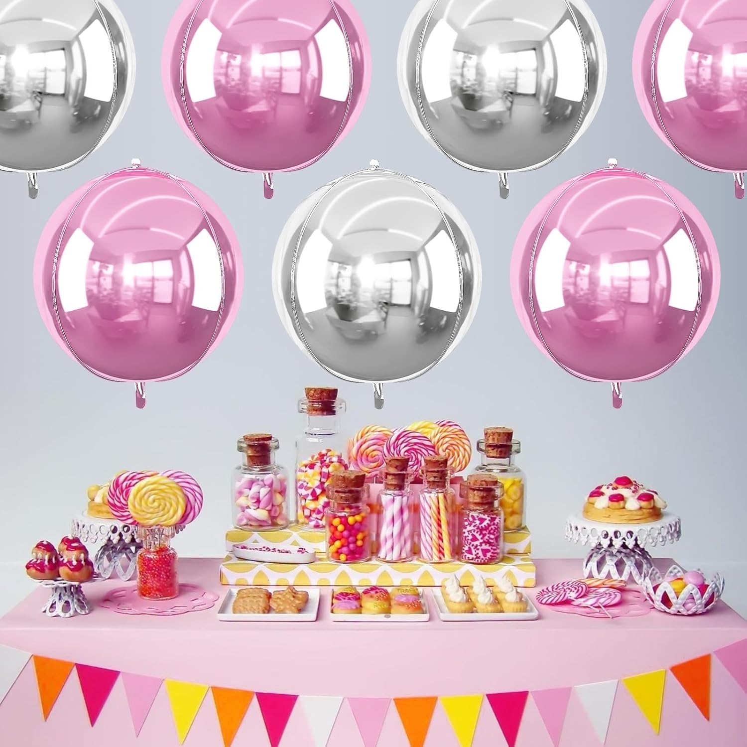 • Package: You will receive 6pcs 22inch 4D round foil balloon, 3pcs pink foil balloons + 3pcs silver foil balloons + 1 straw + 1 roll of ribbon. 4D birthday balloons perfect for decorating the babies, kids, adults’ birthday party.