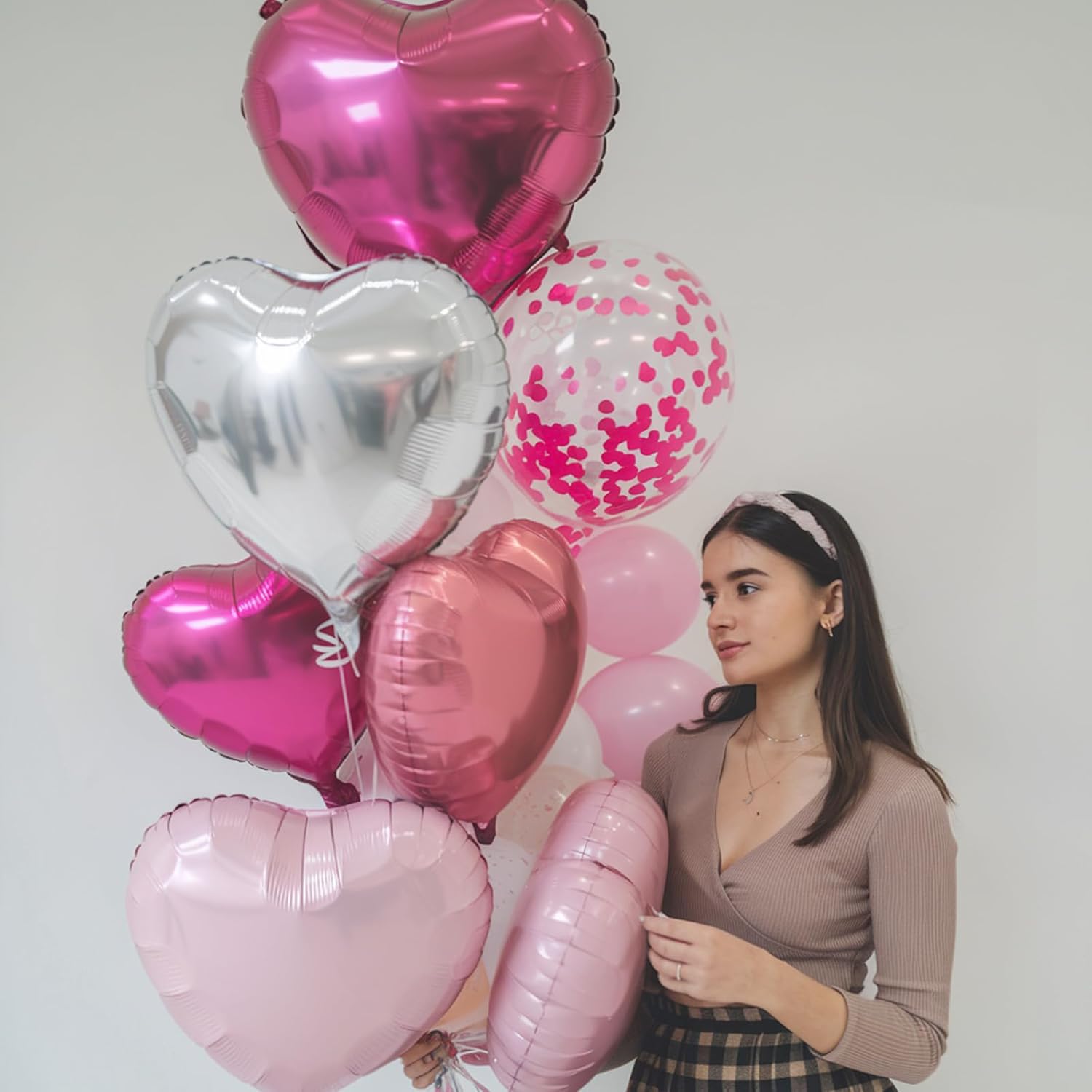 • Versatile Decorative Accent: Perfect for a variety of occasions, including birthdays, baby showers, Valentine's Day, weddings, and anniversaries. These pink and silver heart balloons are suitable for creating stunning balloon bouquets, enhancing party venues, or serving as vibrant photo backdrops.