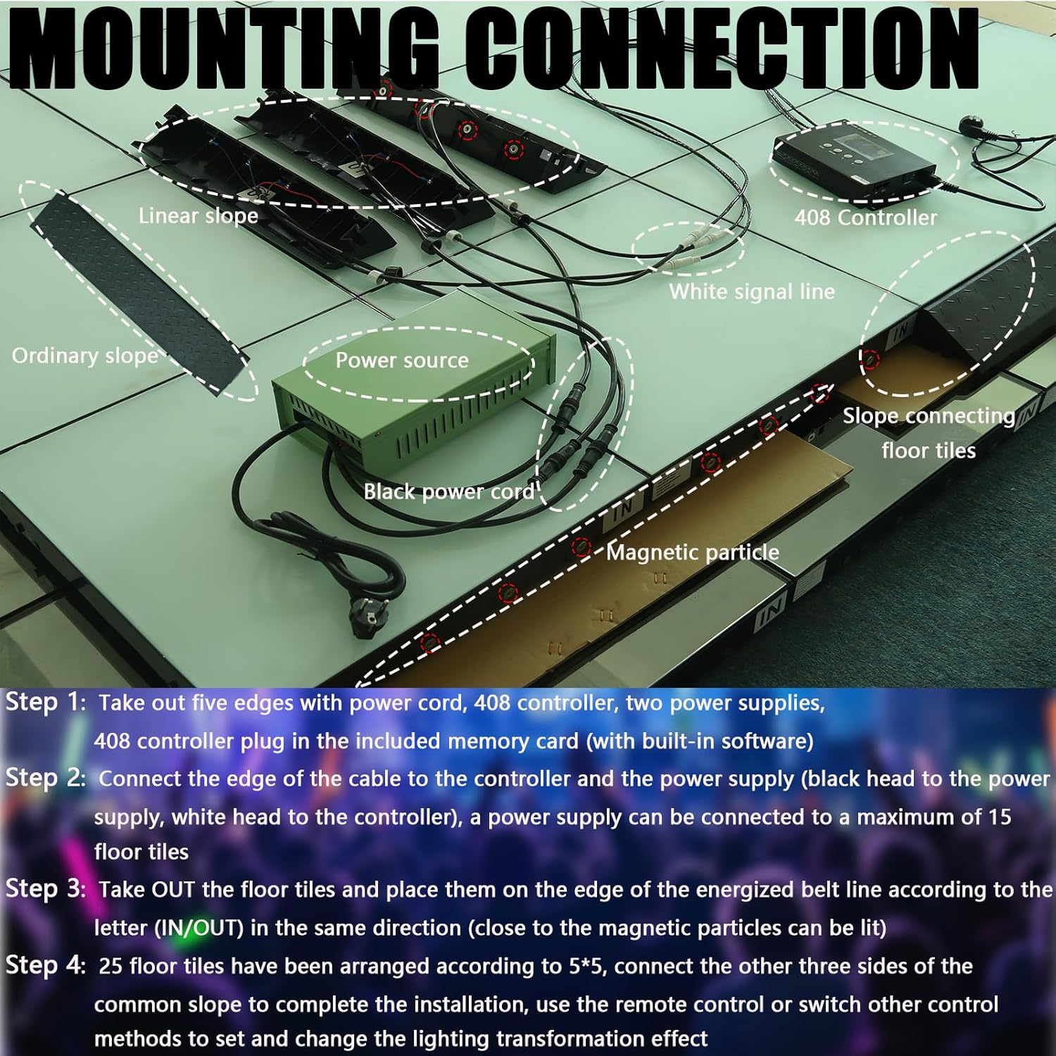 • ➤【Easy Setup & Maintenance】With a simple connection system, installation is quick and hassle-free. The dance floor is also easy to clean and maintain, ensuring it stays in perfect condition. Plus, enjoy free replacements for damaged items and a 24-month warranty for added peace of mind.