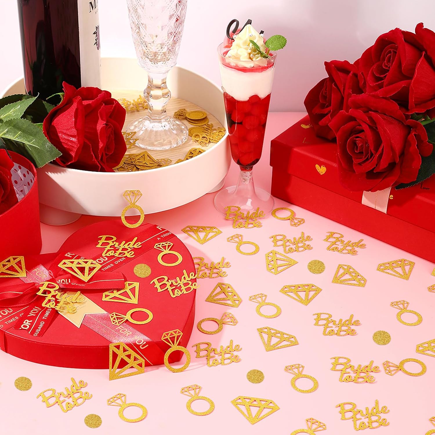 • Premium Materials: Gold diamond ring and bridal to be confetti is made of good-quality paper, tough and not easy to be damaged. Both sides are covered with dazzling golden glitter powder, which not only shines under the light, but also lasts for a long time, adding a luxurious texture to your wedding and ensuring that every piece of bridal shower decorations can be ideally displayed