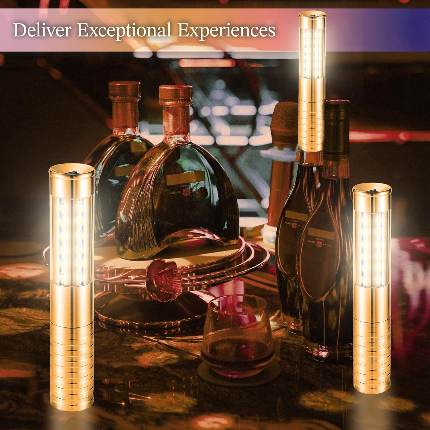 4 Packs Rechargeable LED Strobe Baton Lights Reusable Bottle Service Lights for Liquor Bottles Handheld Service Sparklers for Club Weddings Concert Outdoor Events (Gold-White Light, 4)