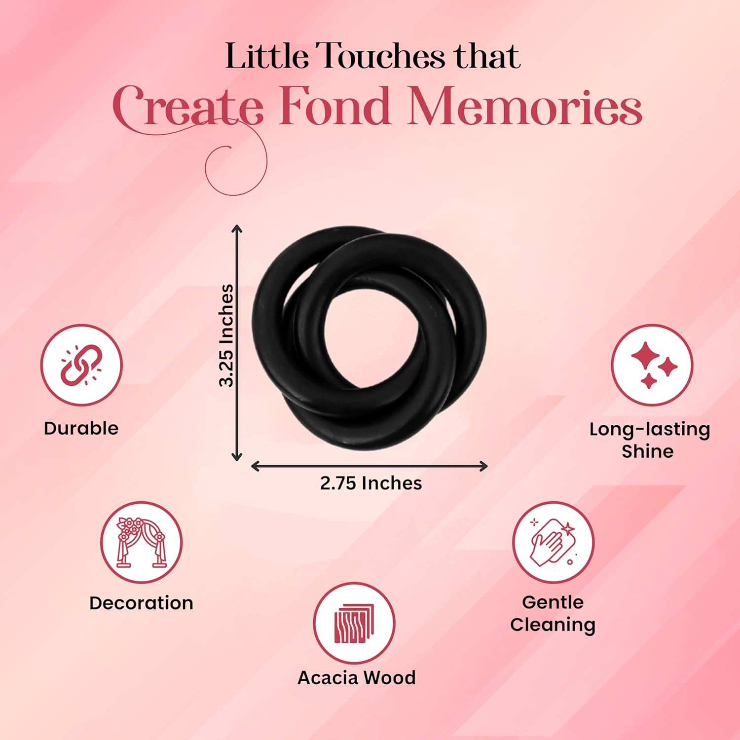 Three Ring Wooden Napkin Rings Set of 12 - Acacia Wood Interlocked Napkin Holder Cuffs for Dinner Table Décor - Rustic Modern Serviette Rings for Weddings, Parties, Receptions (Black) - CLEENTABLE