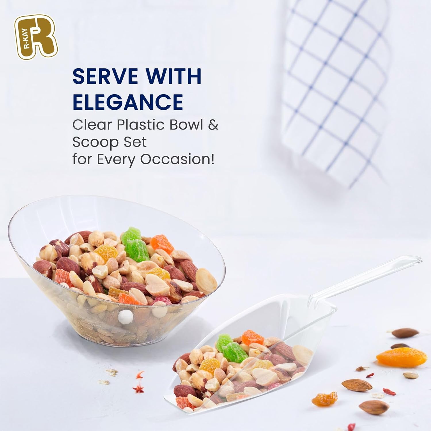 R-kay 16 Pcs Candy Bowls And Plastic Scoops Set - 8 Clear Plastic Candy Bowl 20 Oz And 8 Scoop 6.5 Inch Buffet Containers Set Heavy Duty