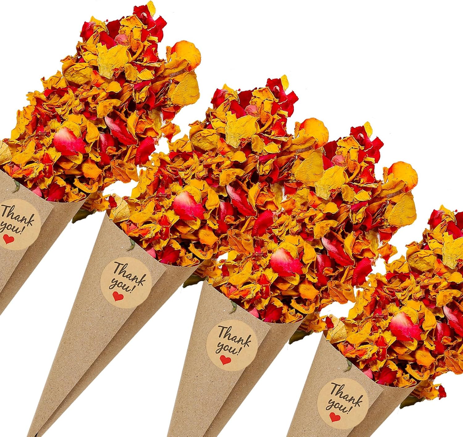 • Durable Material - The confetti cones and paper cone boxes are made of paper material, have no odor, are comfortable to touch, light quality, and do not take up extra space. The dried petals are made of natural rose mix, you can smell the fragrance of different natural rose mixes, giving you a romantic experience.