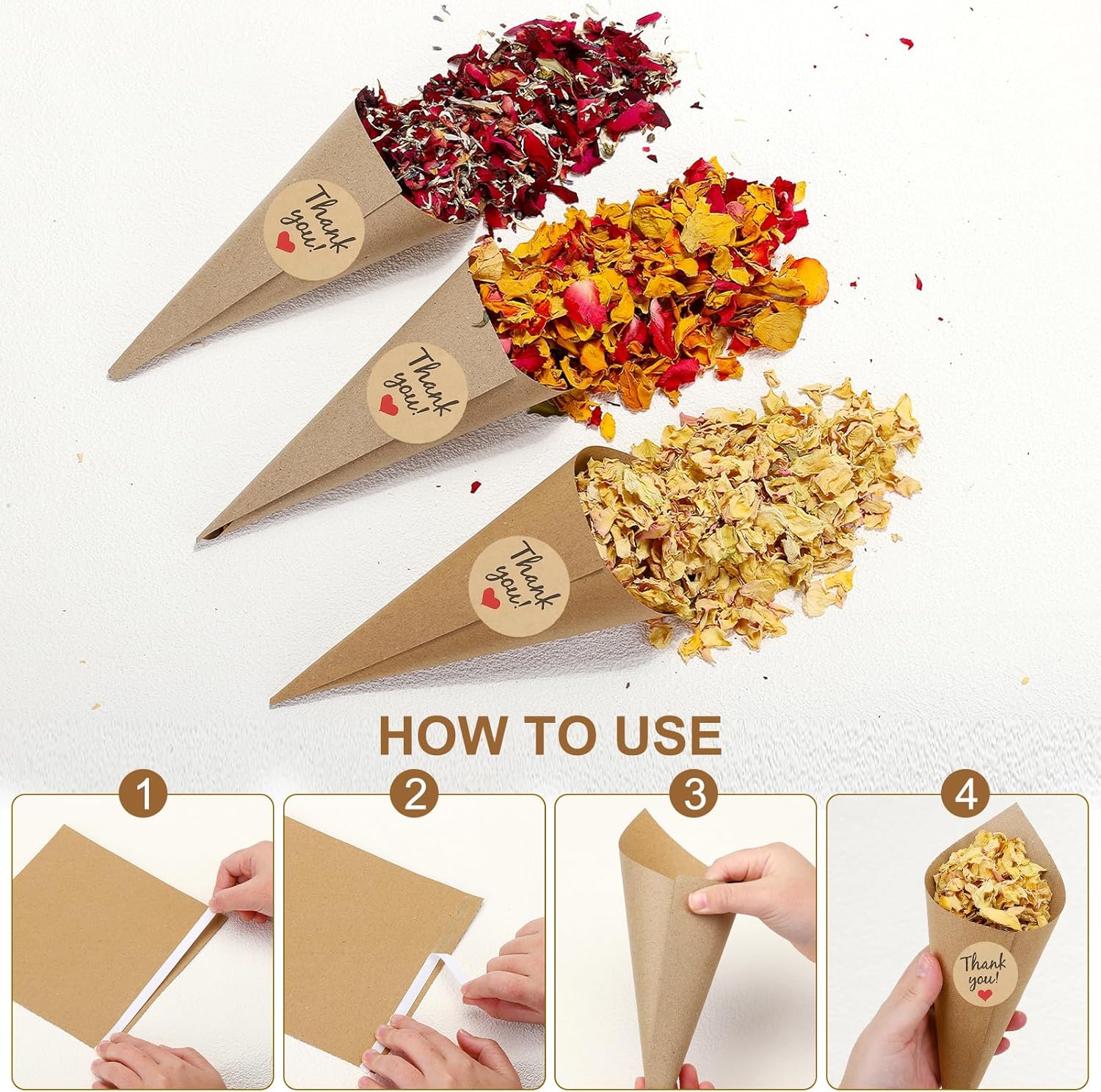 • Durable Material - The confetti cones and paper cone boxes are made of paper material, have no odor, are comfortable to touch, light quality, and do not take up extra space. The dried petals are made of natural rose mix, you can smell the fragrance of different natural rose mixes, giving you a romantic experience.