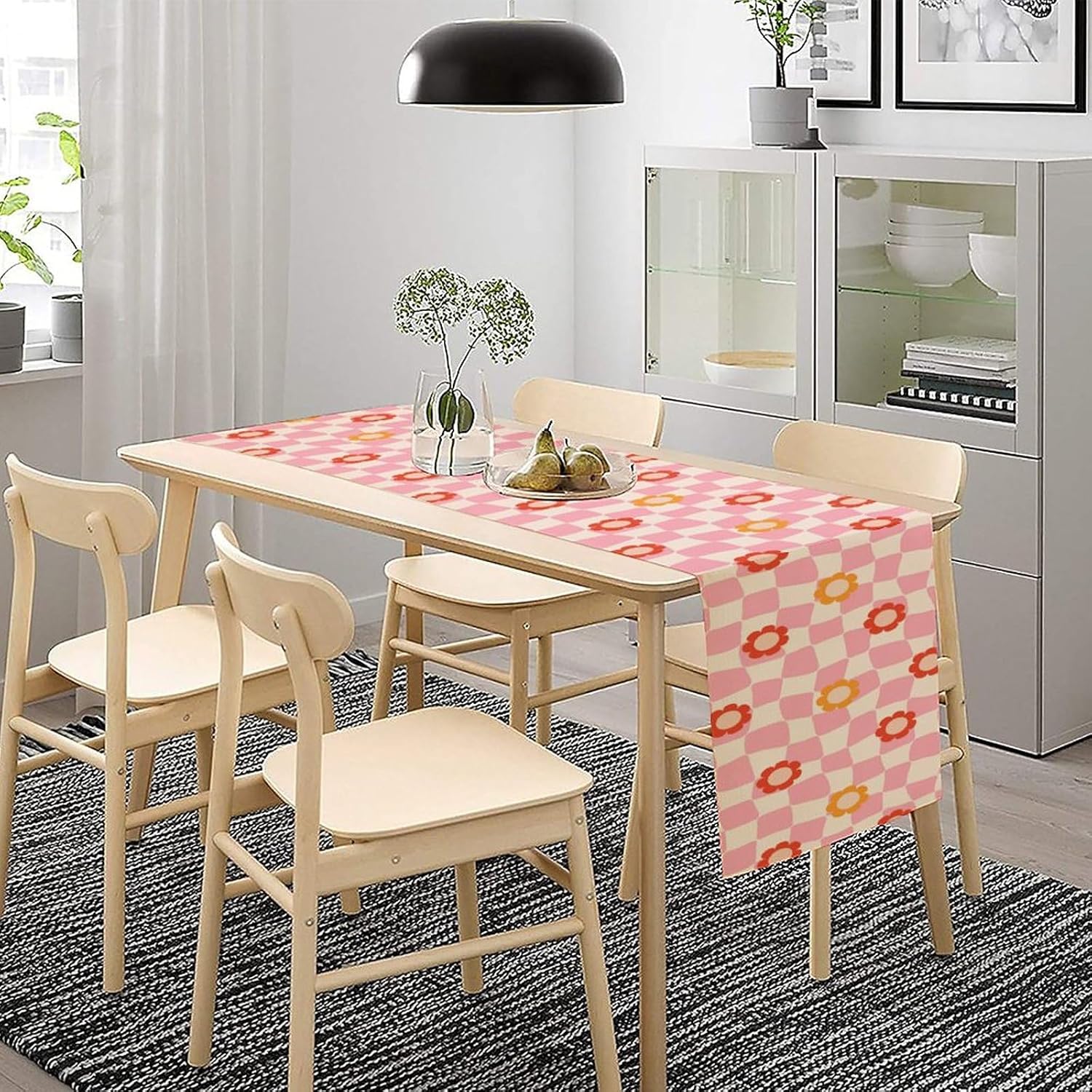 Vintage Floral Table Runner,60s Retro Color Funky Hippie Print Table Cloth Kitchen Dining Table Home Party Decoration 13x72 Inch