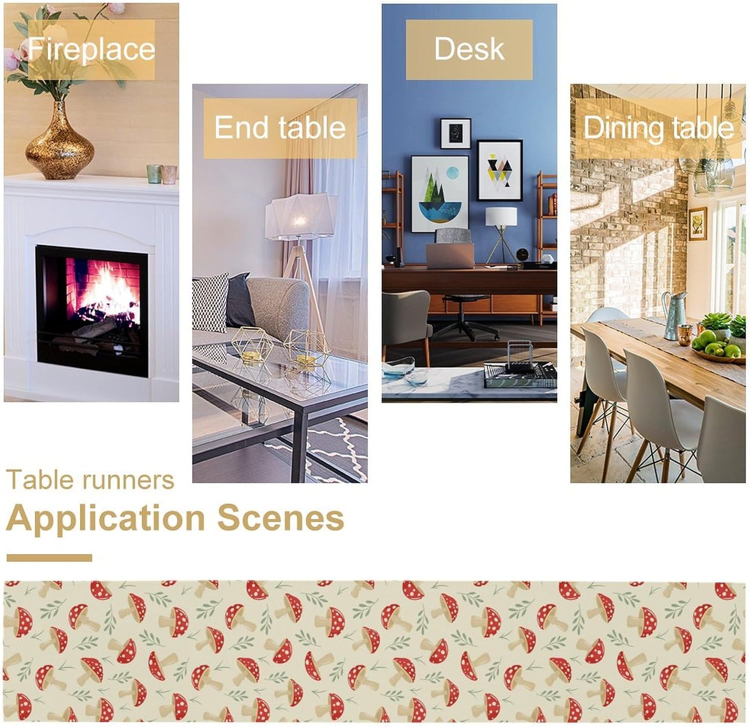 Mushroom Table Runner,Vintage Plant Print Table Runner for Kitchen Dining Table Home Party Decoration 13x72 Inch