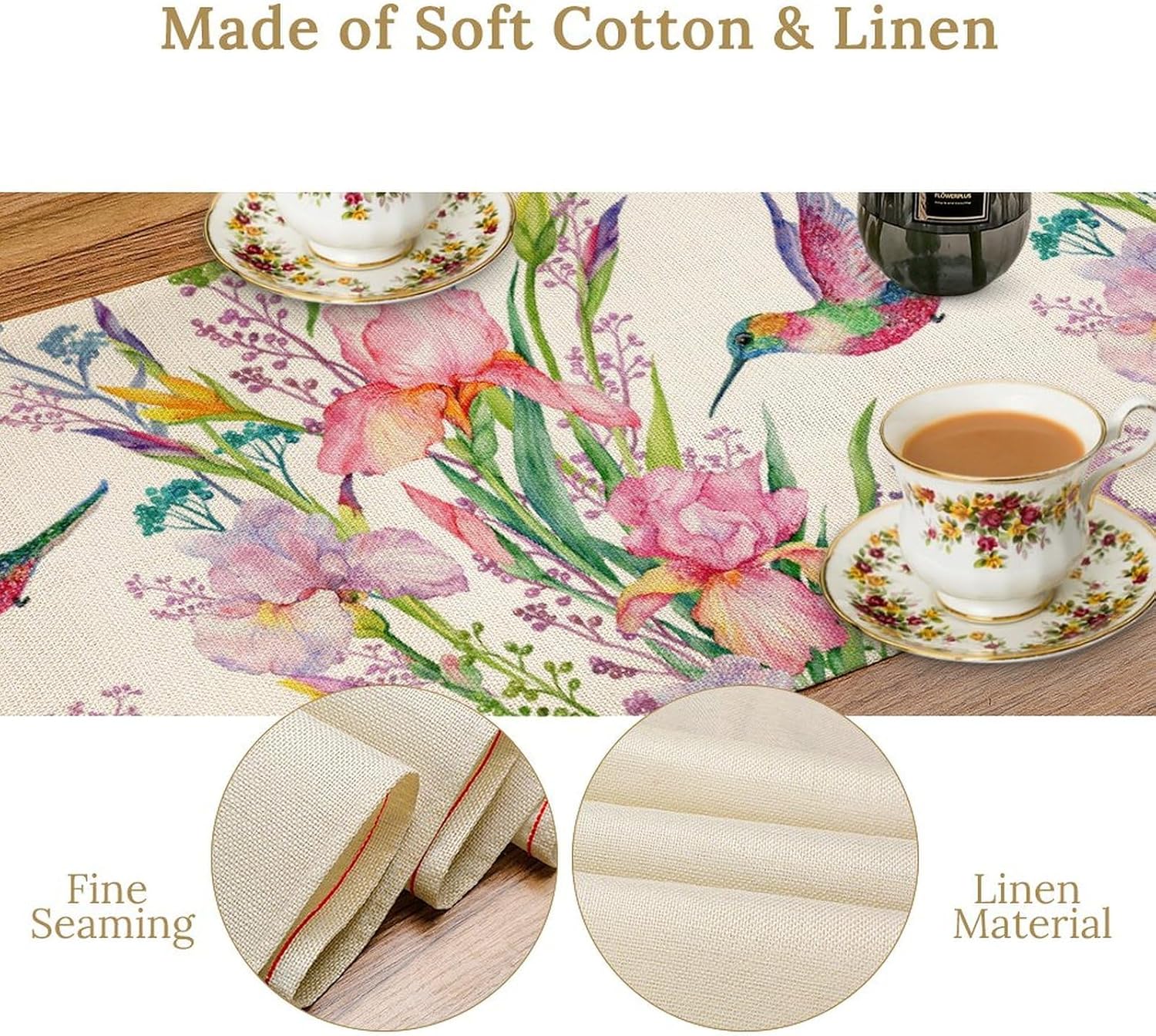 Hummingbird Table Runner,Pink Floral Country Style Table Runner for Kitchen Dining Table Home Party Decoration 13x60 Inch