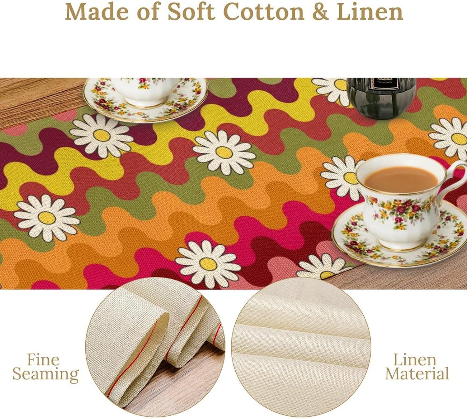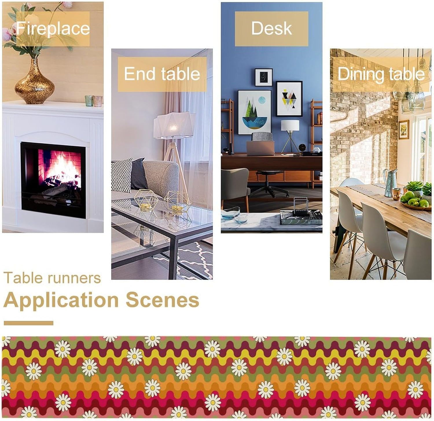 Vintage Floral Table Runner,60s 70s Colorful Retro Abstract Hippie Print Table Runner for Kitchen Dining Table Home Party Decoration 13x36 Inch