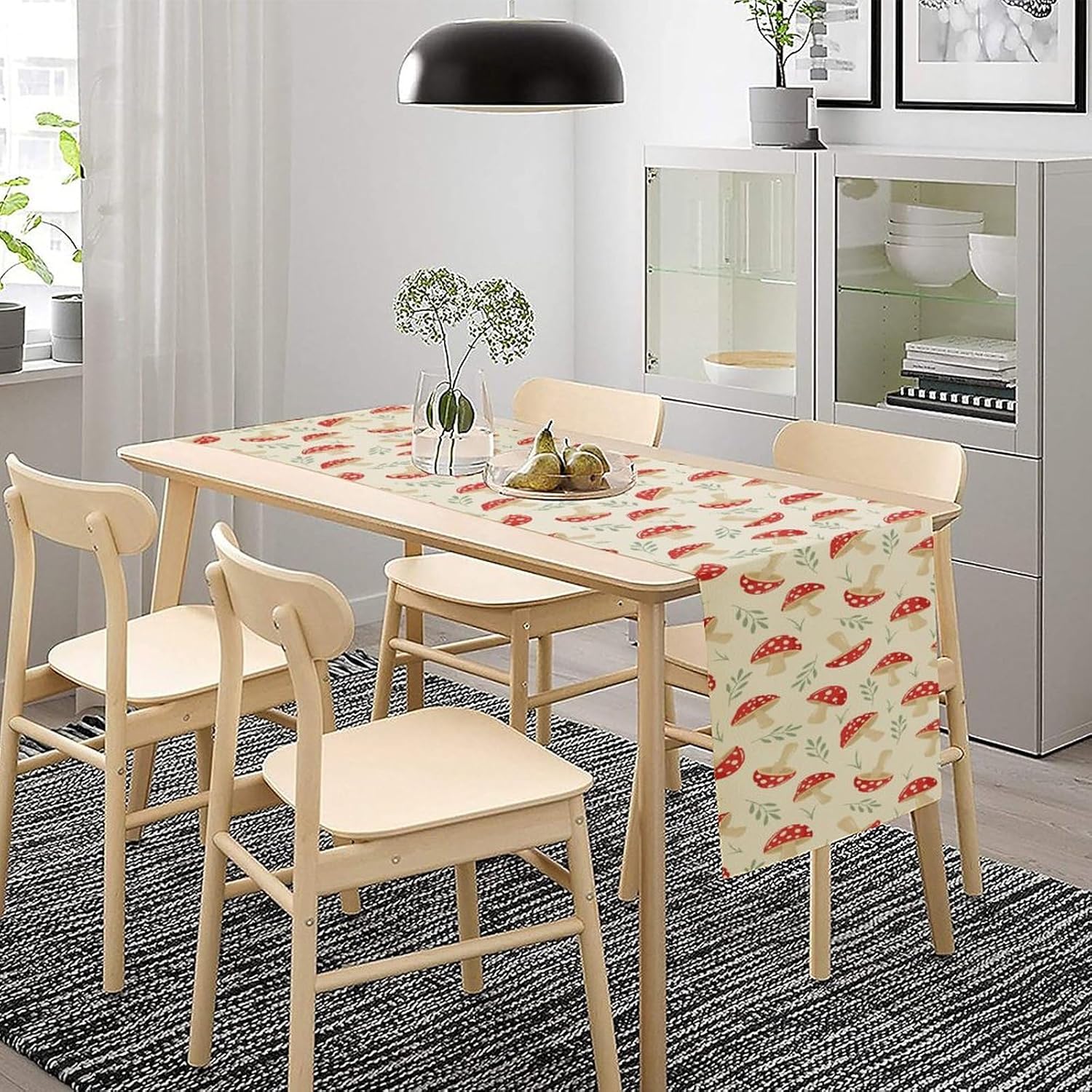 Mushroom Table Runner,Vintage Plant Print Table Runner for Kitchen Dining Table Home Party Decoration 13x36 Inch