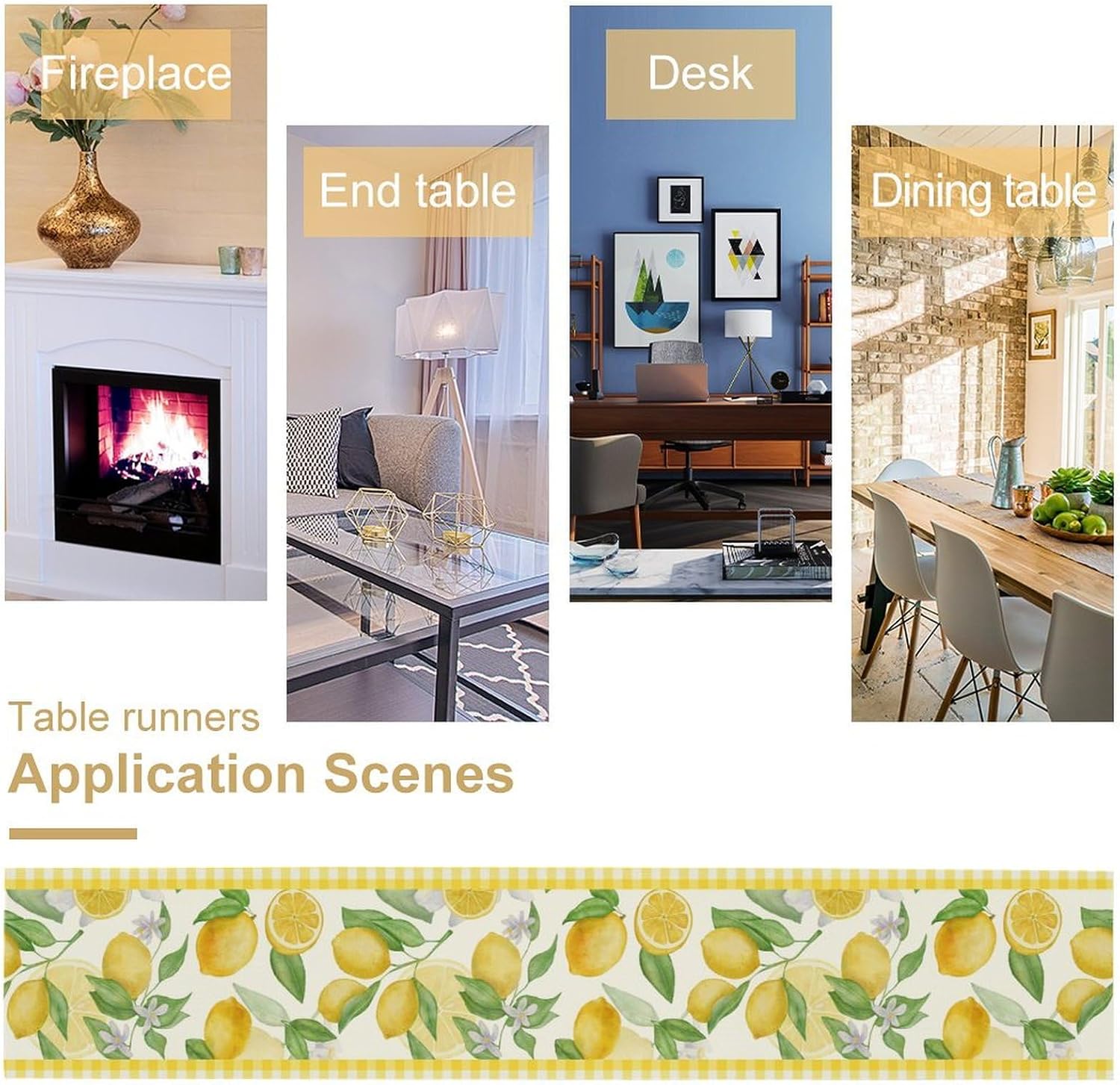 Lemon Table Runner,Yellow White Buffalo Plaid Summer Table Runner for Kitchen Dining Table Home Party Decoration 13x90 Inch
