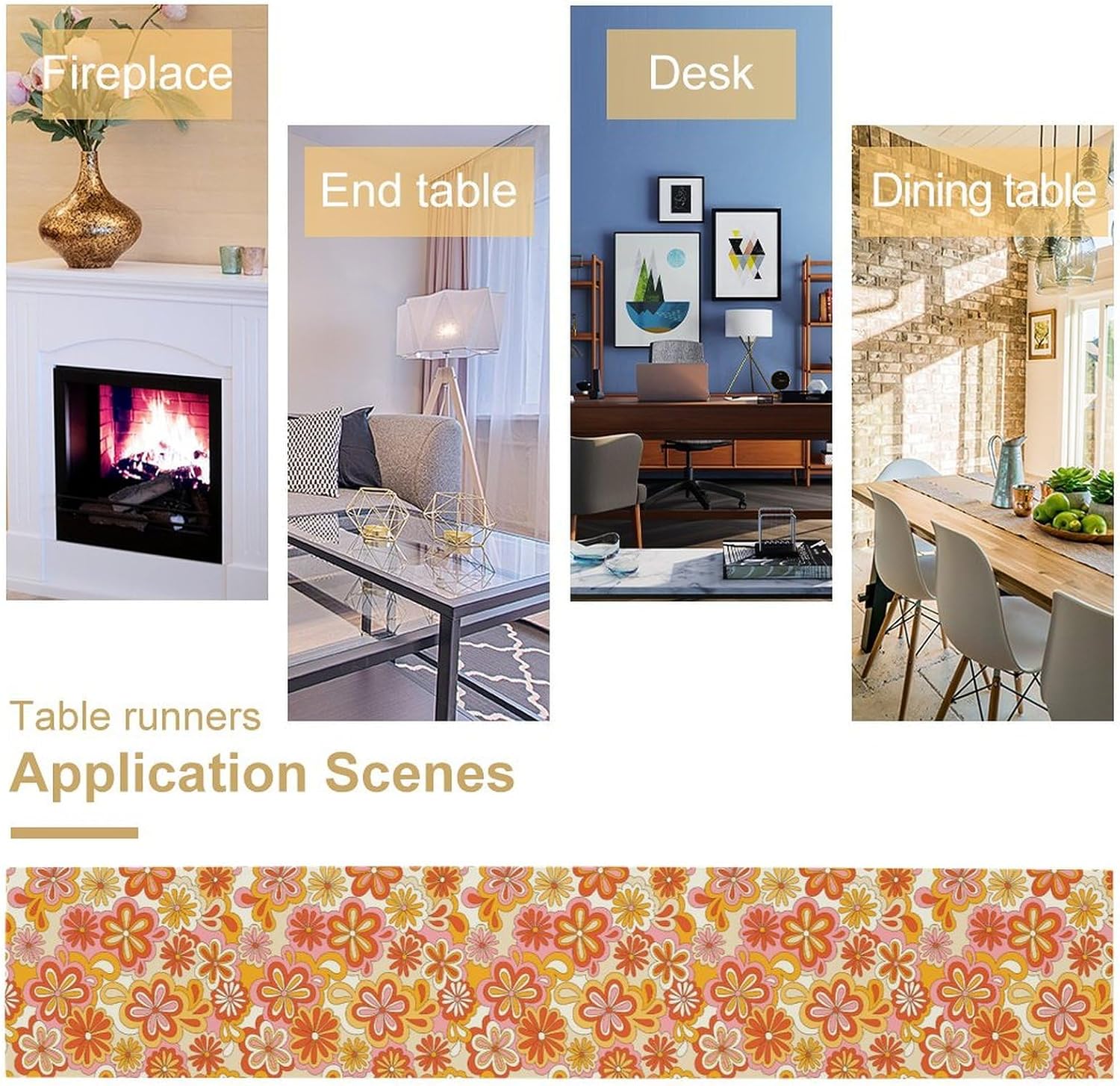 Vintage Floral Table Runner,70s Style Retro Daisies Flower Hippie Table Runner for Kitchen Dining Table Home Party Decoration 13x120 Inch