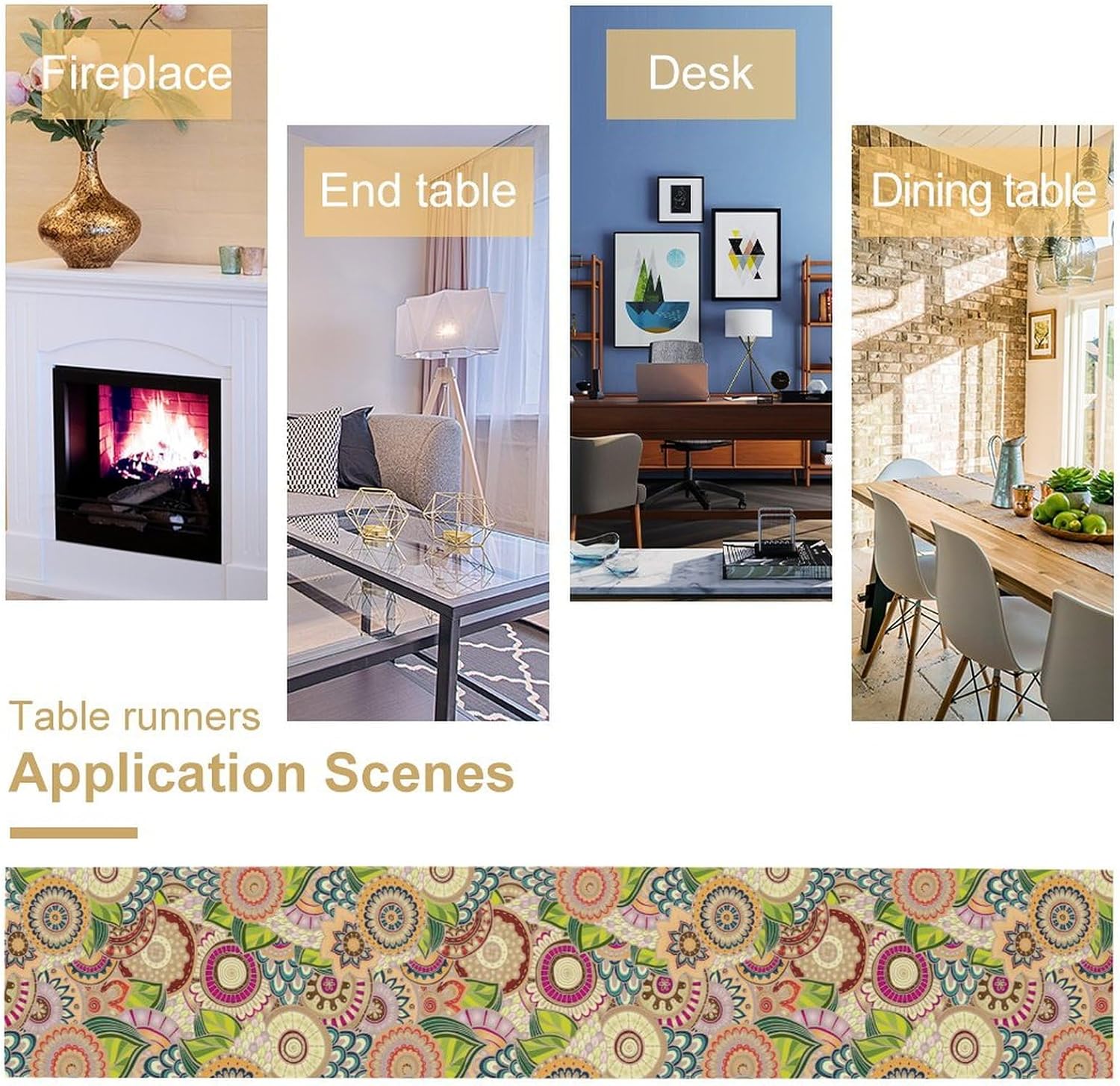 Boho Floral Table Runner,Retro Bohemian Flower Table Runner for Kitchen Dining Table Home Party Decoration 13x60 Inch