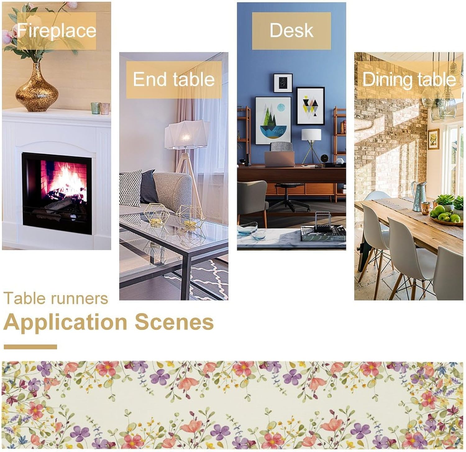 Floral Table Runner,Flowers Plant Print Spring Table Runner for Kitchen Dining Table Decoration for Home Party Decor 13x90 Inch