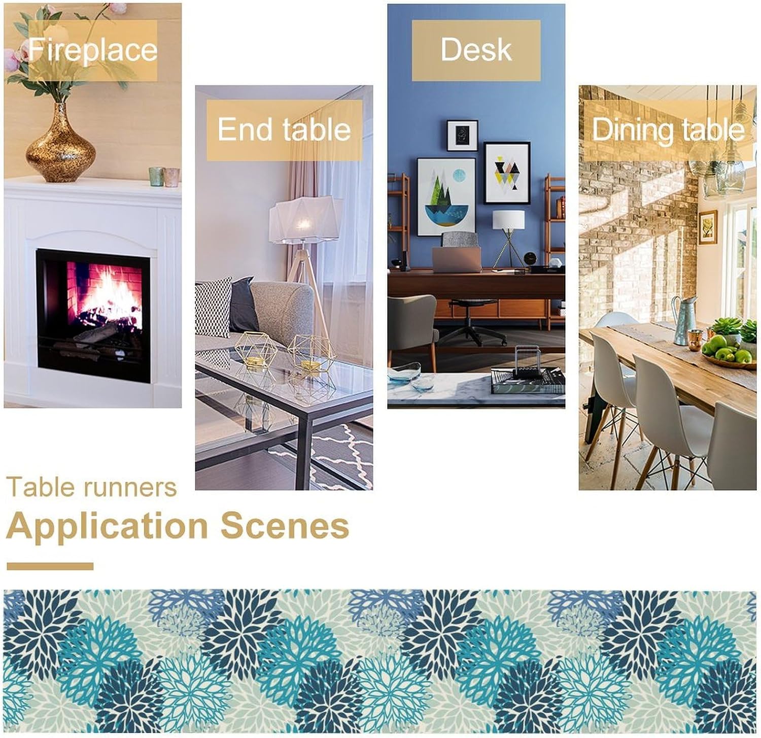 Floral Table Runner,Blue Flowers Print Spring Summer Table Cloth Kitchen Dining Table Home Party Decoration 13x108 Inch