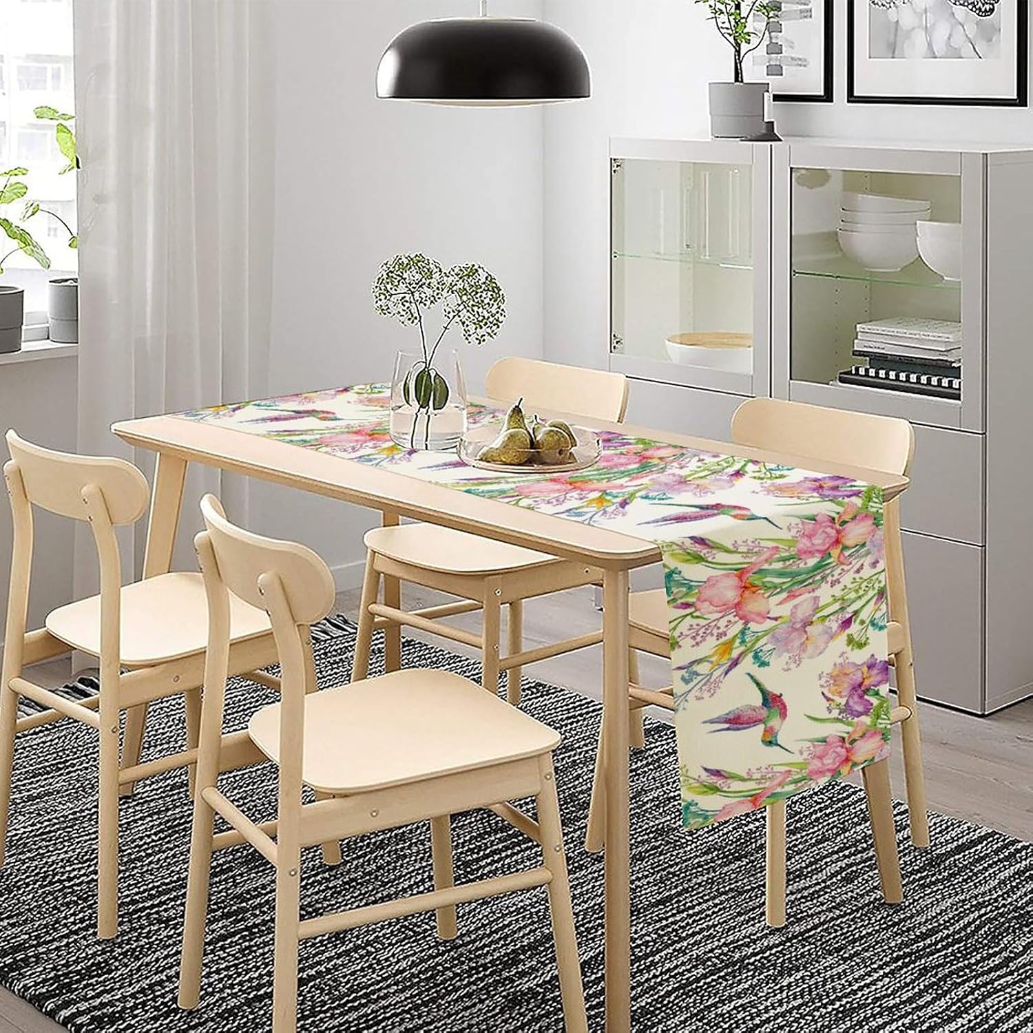 Hummingbird Table Runner,Pink Floral Country Style Table Runner for Kitchen Dining Table Home Party Decoration 13x108 Inch