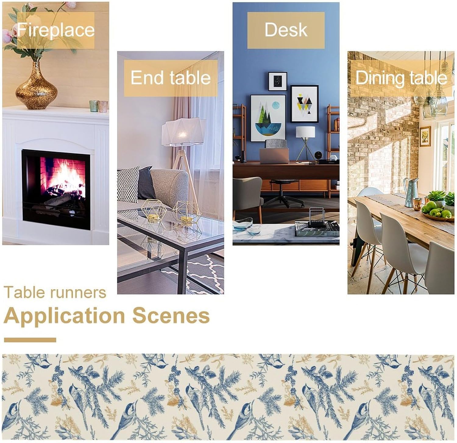 Floral Table Runner,Sketch Birds and Flowers Summer Table Runner Kitchen Dining Table Decoration for Home Party Decor 13x120 Inch