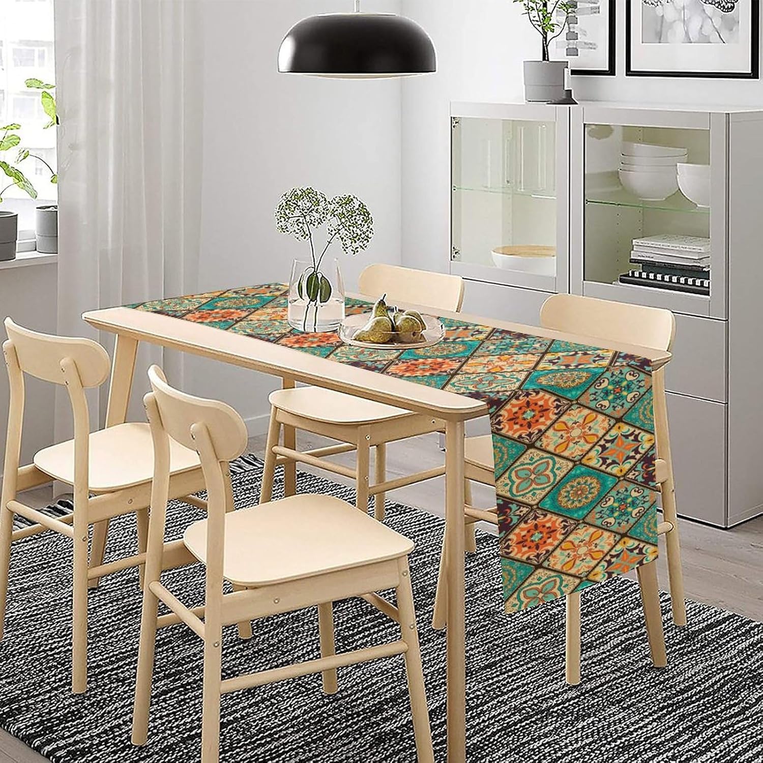 Boho Floral Table Runner,Vintage Bohemian Style Table Runner for Kitchen Dining Table Home Party Decoration 13x108 Inch