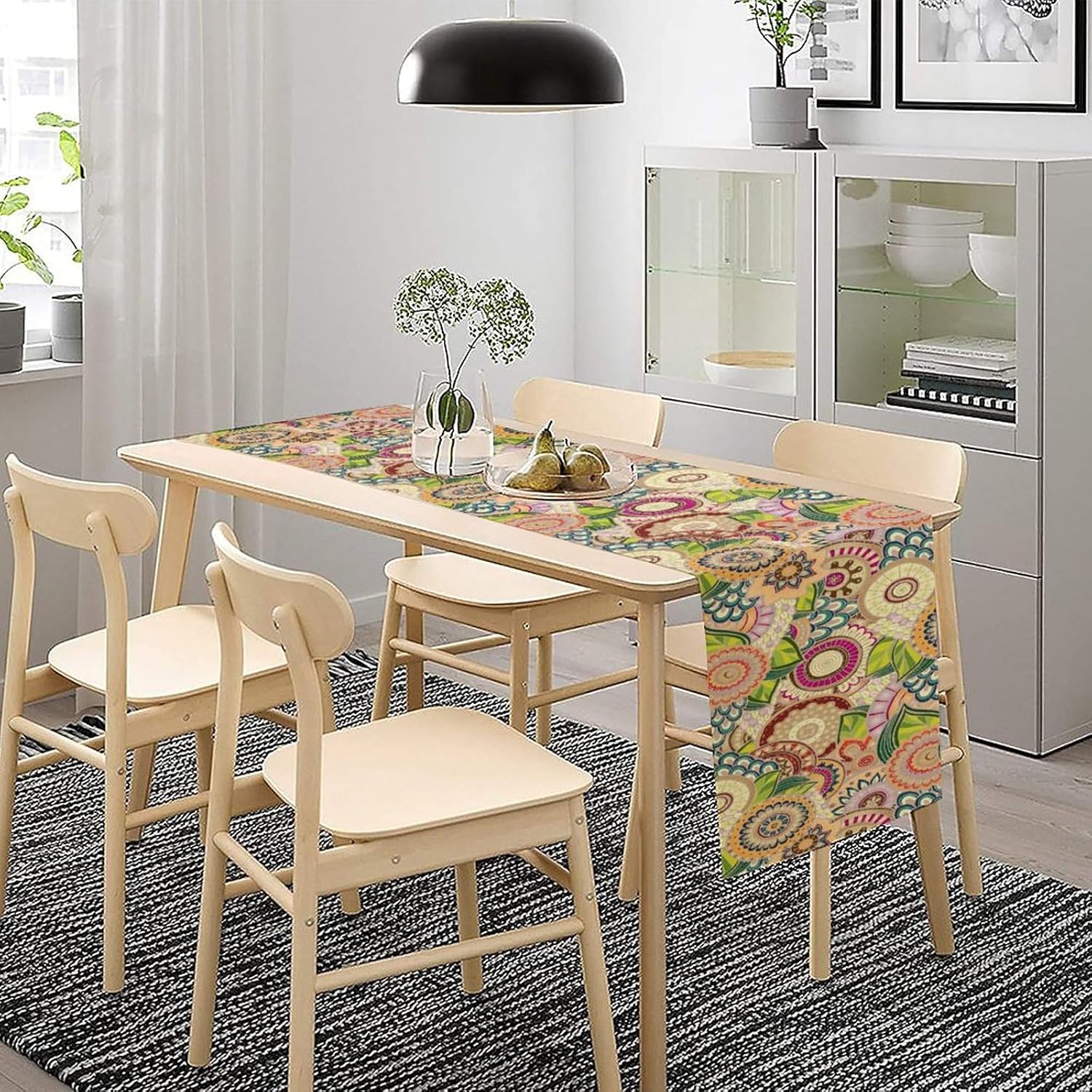 Boho Floral Table Runner,Retro Bohemian Flower Table Runner for Kitchen Dining Table Home Party Decoration 13x108 Inch
