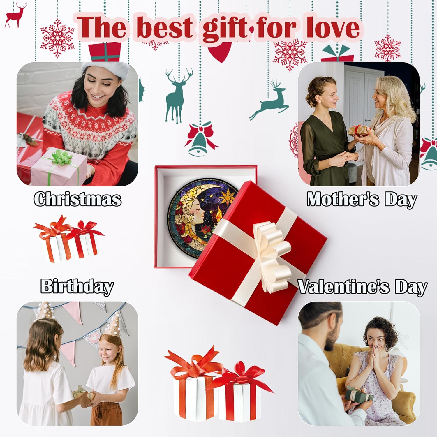 Stained Glass Window Hanging, Moon Goddess Torch Suncatcher Diamond Glass Panel Hangings Dream Sun Catchers Decor for Birthday for Women, Men, Wife, Aunt, and Mom 11.8x11.8 in