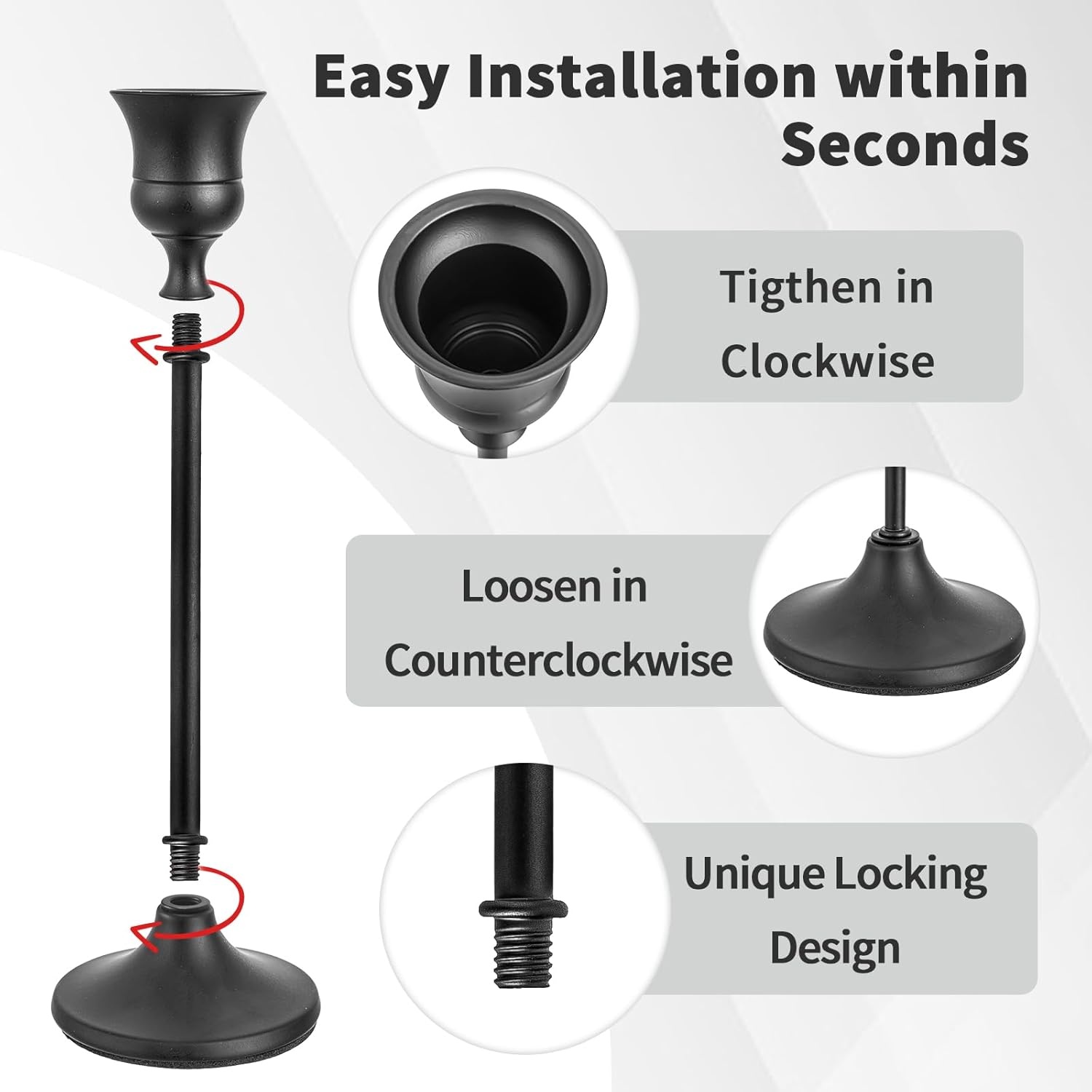 • [Stable Sturdy Secure]: Our tapered candle holder is made of high quality aluminum alloy material.The bottom of each candlestick holders is equiped with non-slip pads to increase friction while protecting your desktop from scratches and damage.It ensures stability and longer lifetime for your candles.Also we add metal ring to rod, which makes the installation more user-friendly and easier.