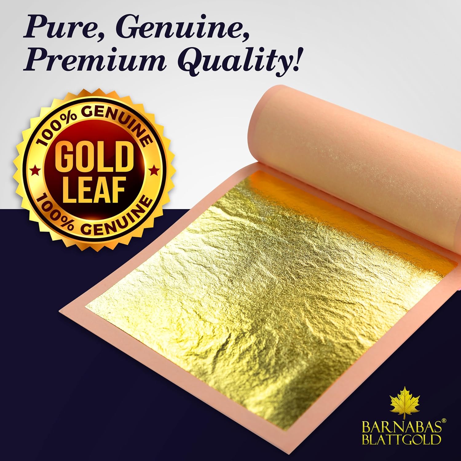 Barnabas Blattgold Edible Gold Leaf 24K - Cake Decorations, Loose Gold Leaf Sheets for Cupcakes - 3.1 inches, Book of 20