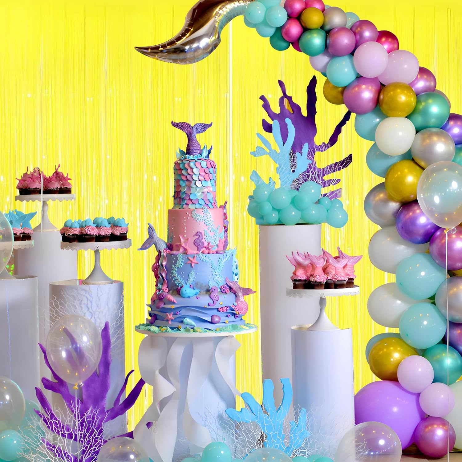• 2 Pack foil fringe tinsel backdrops: each measuring a whopping 3.3 ft x 8.3 ft.Long enough for indoor or outdoor parties. Also can be cut in suitable length for your birthdays Party decorations These backdrops are perfect for creating stunning party decorations, event backdrops, and photo booths that will leave your guests in awe.