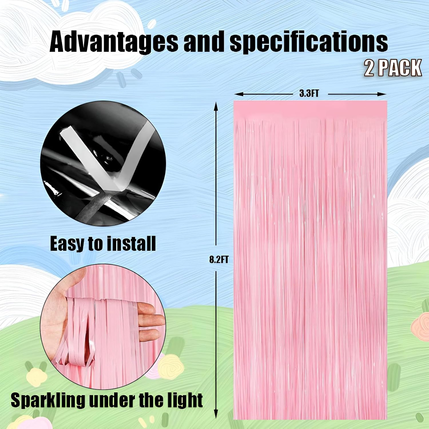 • 2 Pack foil fringe tinsel backdrops: each measuring a whopping 3.3 ft x 8.3 ft.Long enough for indoor or outdoor parties. Also can be cut in suitable length for your birthdays Party decorations These backdrops are perfect for creating stunning party decorations, event backdrops, and photo booths that will leave your guests in awe.