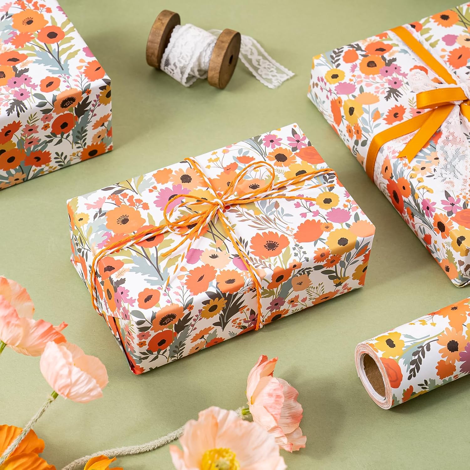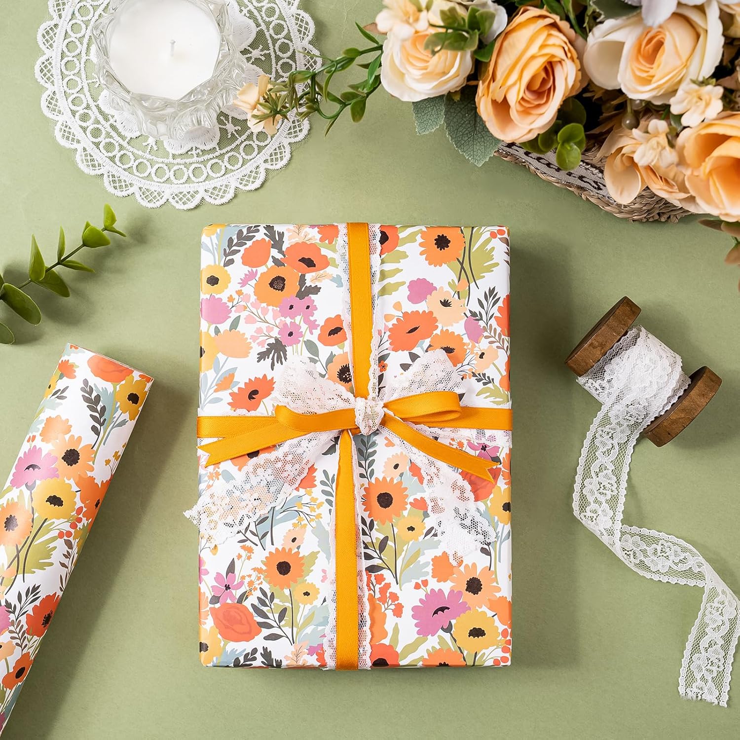 • Floral Design: Kraft bright summer floral wrapping paper design, will make your gift exudes charm and elegance. The flower wrapping paper make it ideal for creating a wonderful gift presentation that leaves a lasting impression.